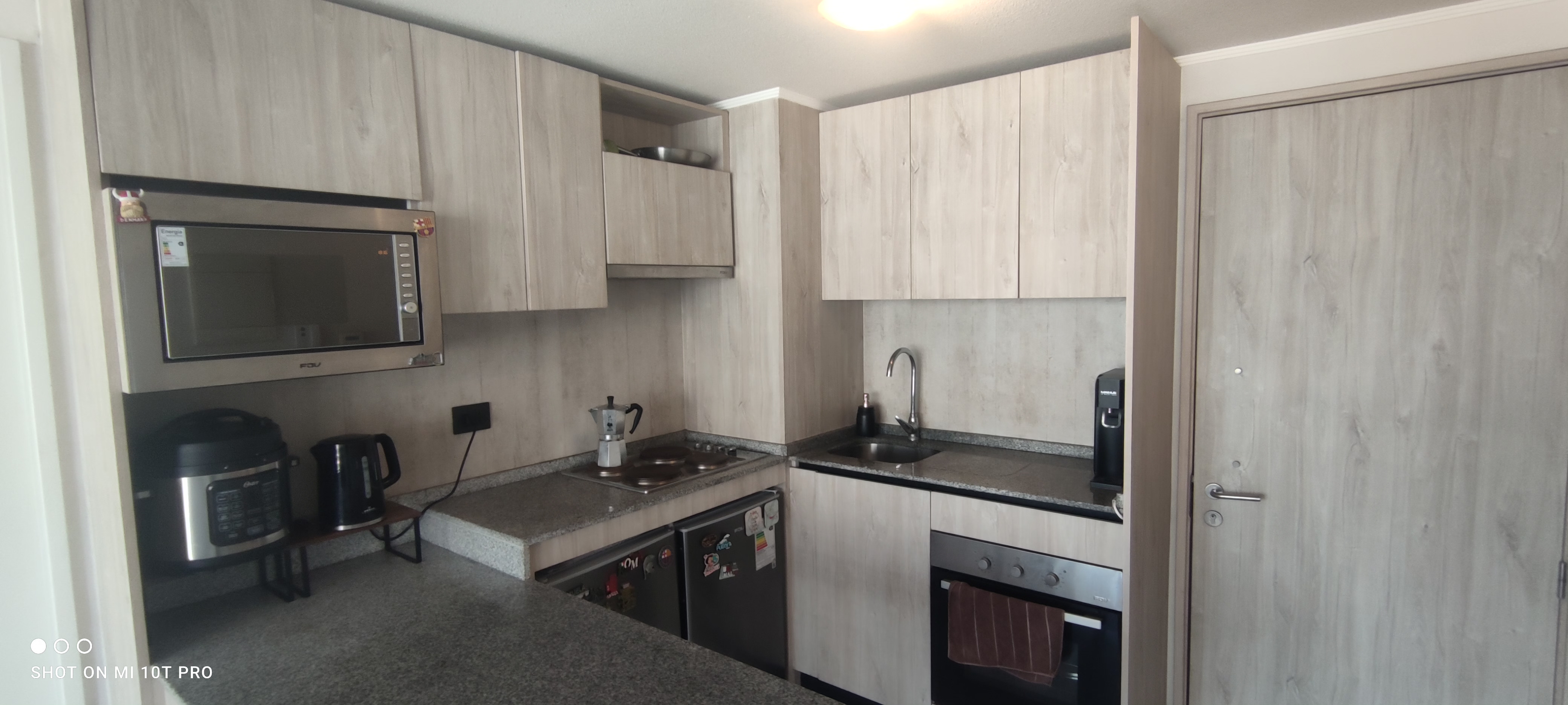 Cocina americana completamente equipada: horno, encimera, campana y microondas