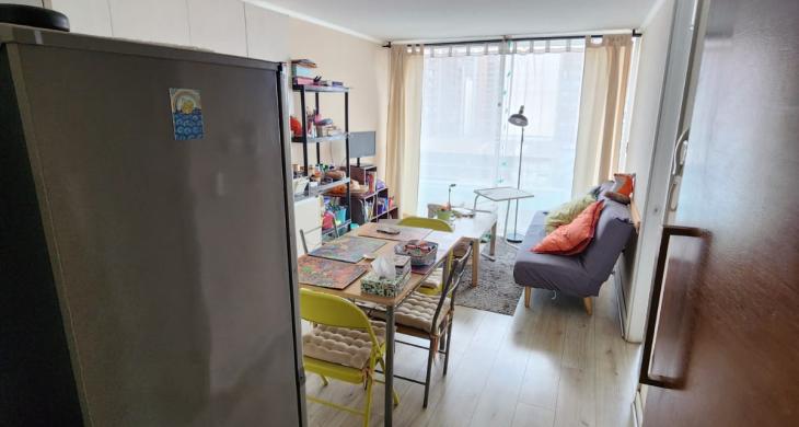 El inmueble se presenta como una solución habitacional eficiente y sofisticada, con una superficie total de 35 metros cuadrados construidos bajo altos estándares de calidad. La distribución interior contempla un dormitorio principal y un baño completo, espacios optimizados para ofrecer el máximo confort en cada metro cuadrado. La propiedad, de estado usado pero meticulosamente mantenida desde su construcción en el año 2016, destaca por su luminosidad natural y una acogedora terraza de 3 metros cuadrados que permite disfrutar de una panorámica urbana única en el corazón de Santiago, otorgando un respiro necesario frente al ritmo de la ciudad.