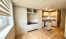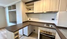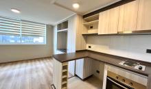 - Cocina americana amoblada y equipada con encimera a gas, horno empotrado y campana, Mesón cubierta de granito.