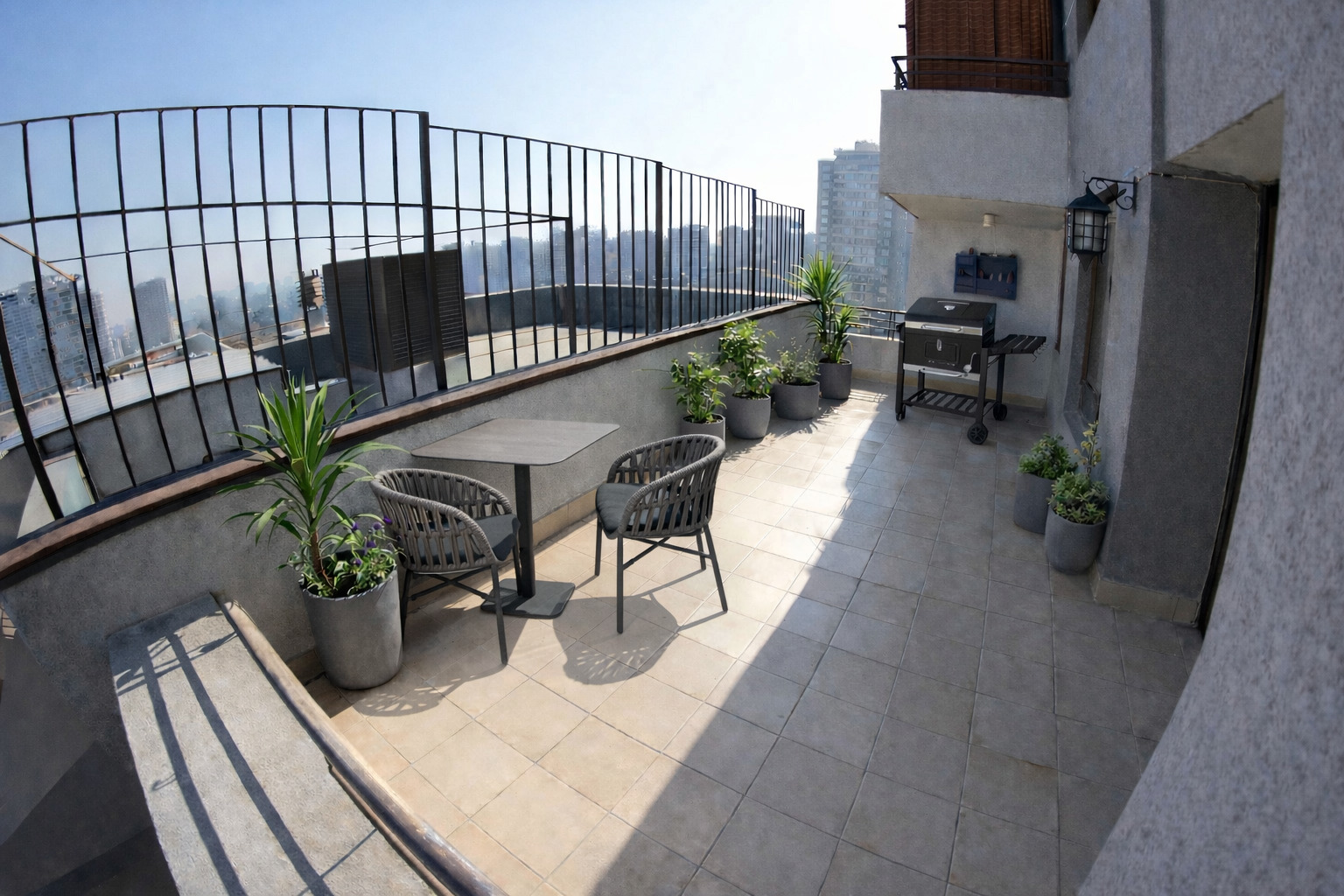 Presentamos este impecable departamento de 75 metros cuadrados interiores, cuya distribución ha sido pensada para maximizar la entrada de luz natural y la fluidez de sus espacios. El principal atributo diferenciador es su espectacular terraza de 45 metros cuadrados, que eleva la superficie total a unos impresionantes 120 metros cuadrados de uso exclusivo, un espacio ideal para el esparcimiento, la creación de jardines de altura o áreas de descanso al aire libre. La unidad, situada en el piso 19, ofrece una perspectiva despejada de la ciudad, garantizando privacidad y una excelente ventilación. El programa habitacional consta de dos dormitorios espaciosos, destacando la habitación principal configurada en suite para mayor comodidad, además de un segundo baño completo con terminaciones de alta calidad.
