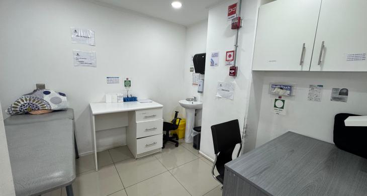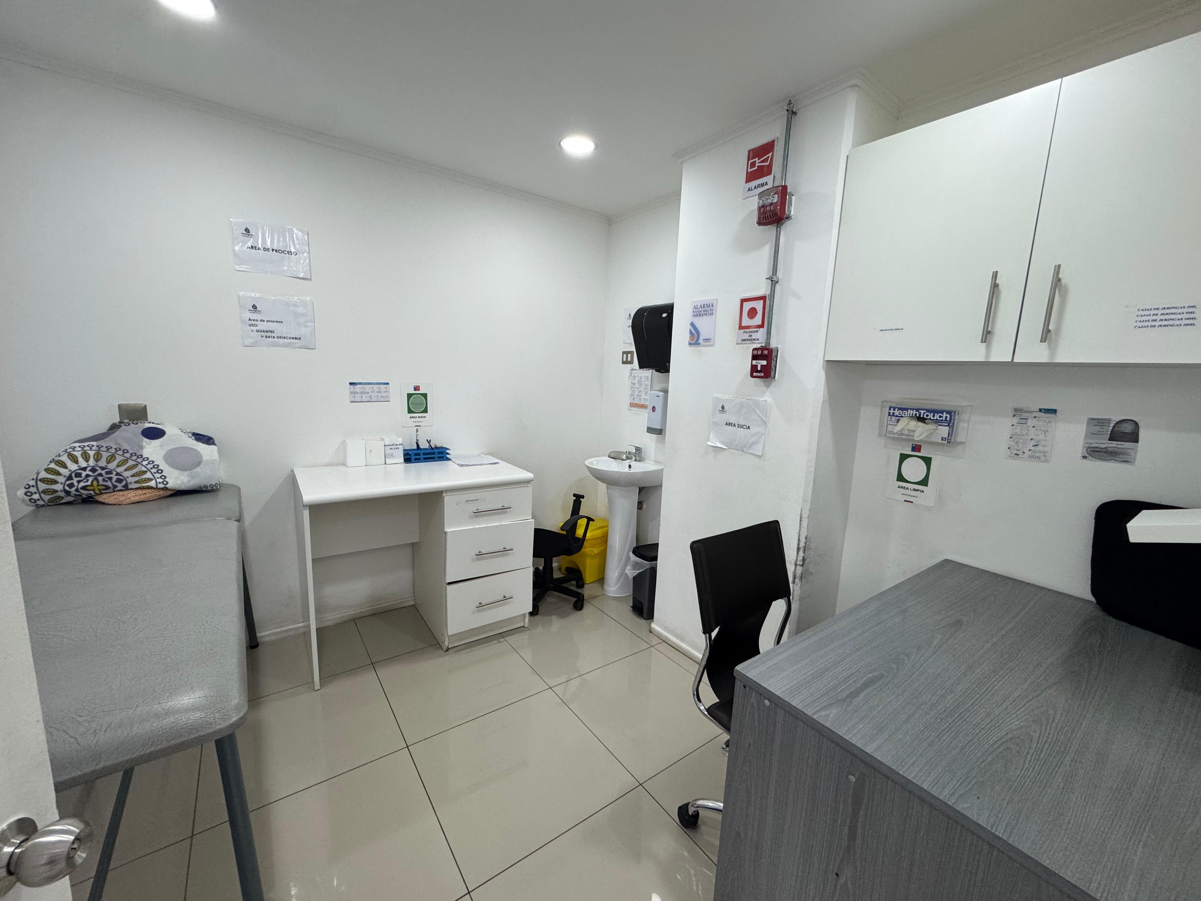 Local 1 y 2 funcionan actualmente como Centro de toma de muestras, recepción, 1 oficina de administración, 2 baños, 1 baño personal, 1 baño discapacitado, 2 salas de procedimiento, 3 box de toma de muestra, 1 sala de residuos, Kitchener, 2 estacionamientos, 1 bodega.