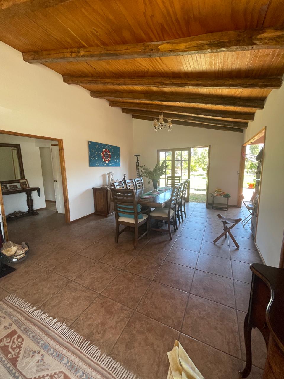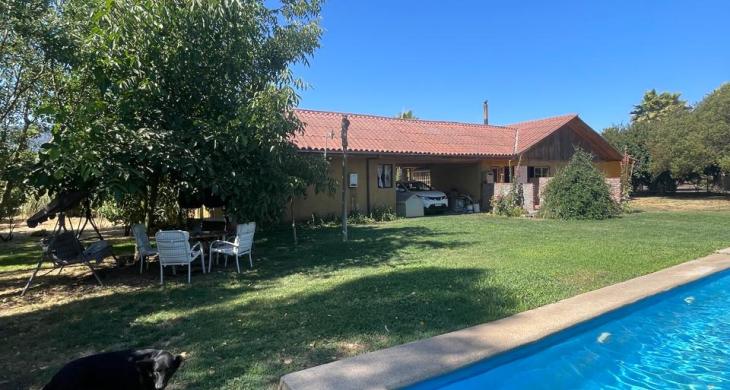 Esta magnífica propiedad cuenta con dos casas construidas en una extensa parcela de 5000 m², ideal para quienes buscan amplitud, privacidad y contacto con la naturaleza. Las construcciones $50.000.- cada periodo; La casa principal tiene un total de 274 m², distribuidos inteligentemente para ofrecer comodidad y funcionalidad, 3 dormitorios, incluyendo 1 suite, y baños, y 2 dormitorios màs. Living y comedor muy amplios con viga a la vista, cocina integrada. La segunda casa cuenta con un living, dormitorio, baño, lavadero. Hay una tercera casa en construcciòn material sòlido; Al exterior cuenta con una gran piscina, jardines, àrboels frutales, bodega, bellos jardines proporcionando espacios íntimos y confortables para cada miembro de la familia.