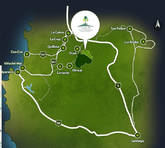 A sólo 75 min de Santiago, 45 min de Viña del Mar y 10 min de Ocoa