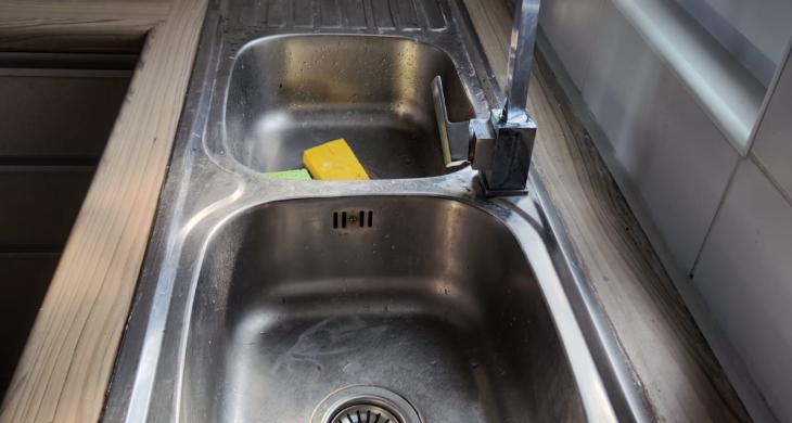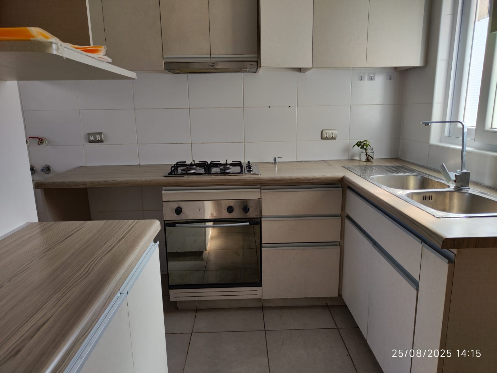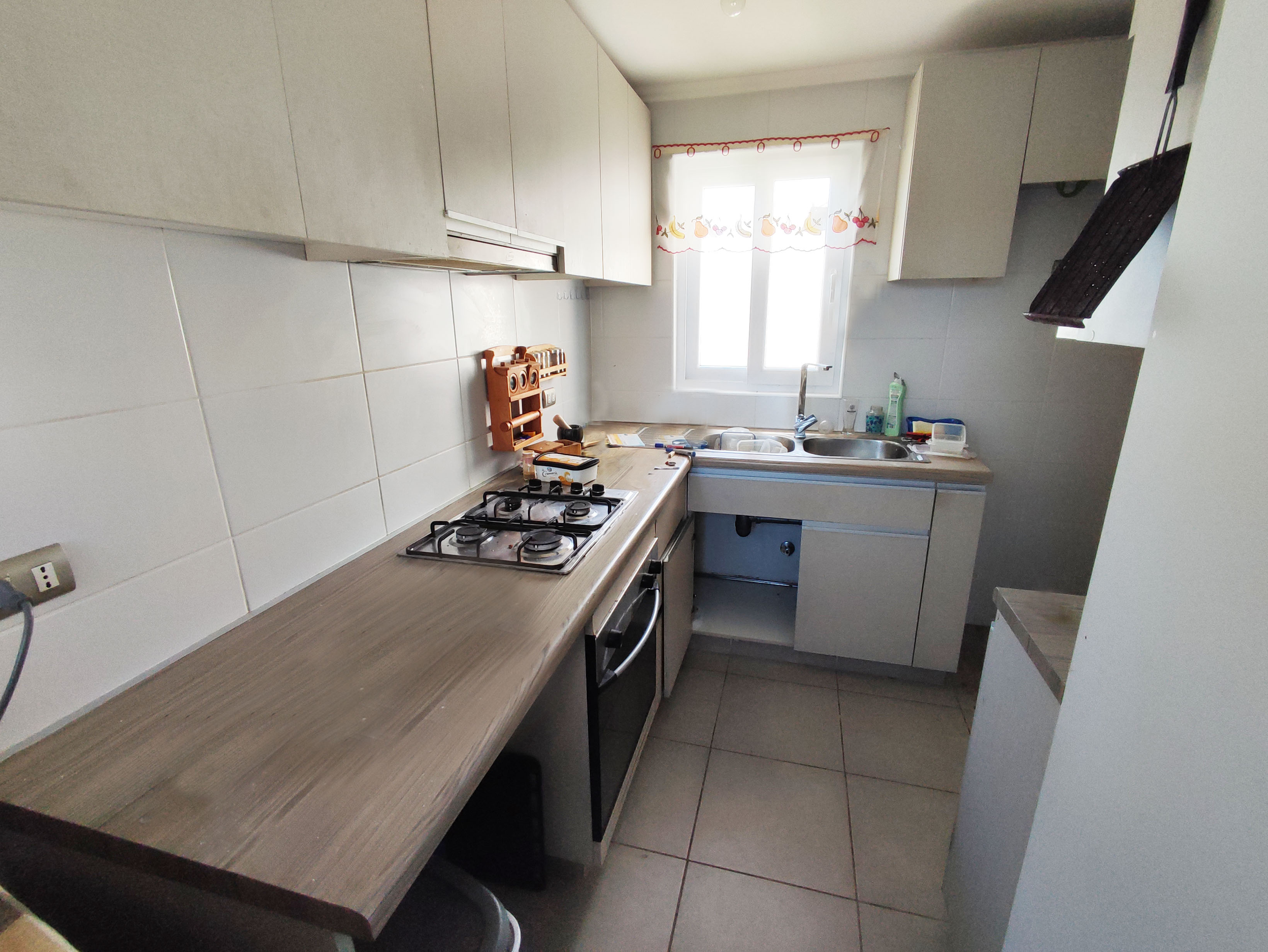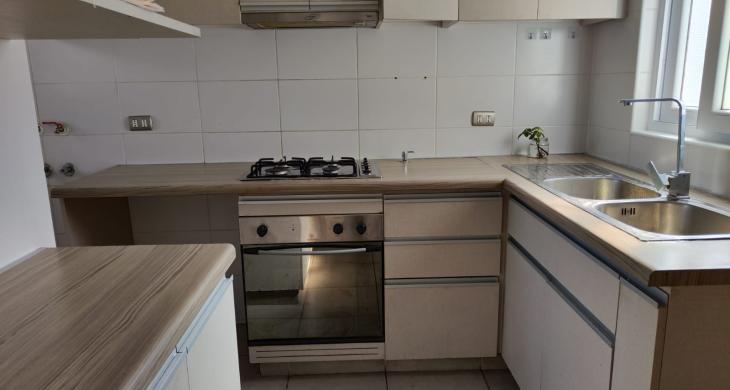 - Cocina completa y equipada con muebles, horno y encimera.