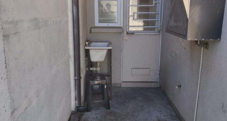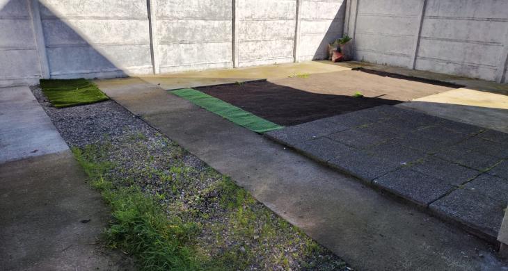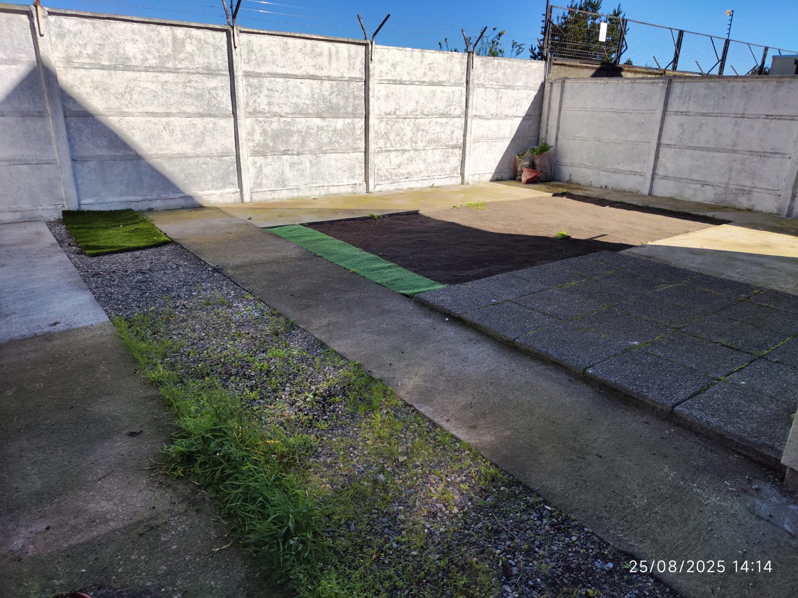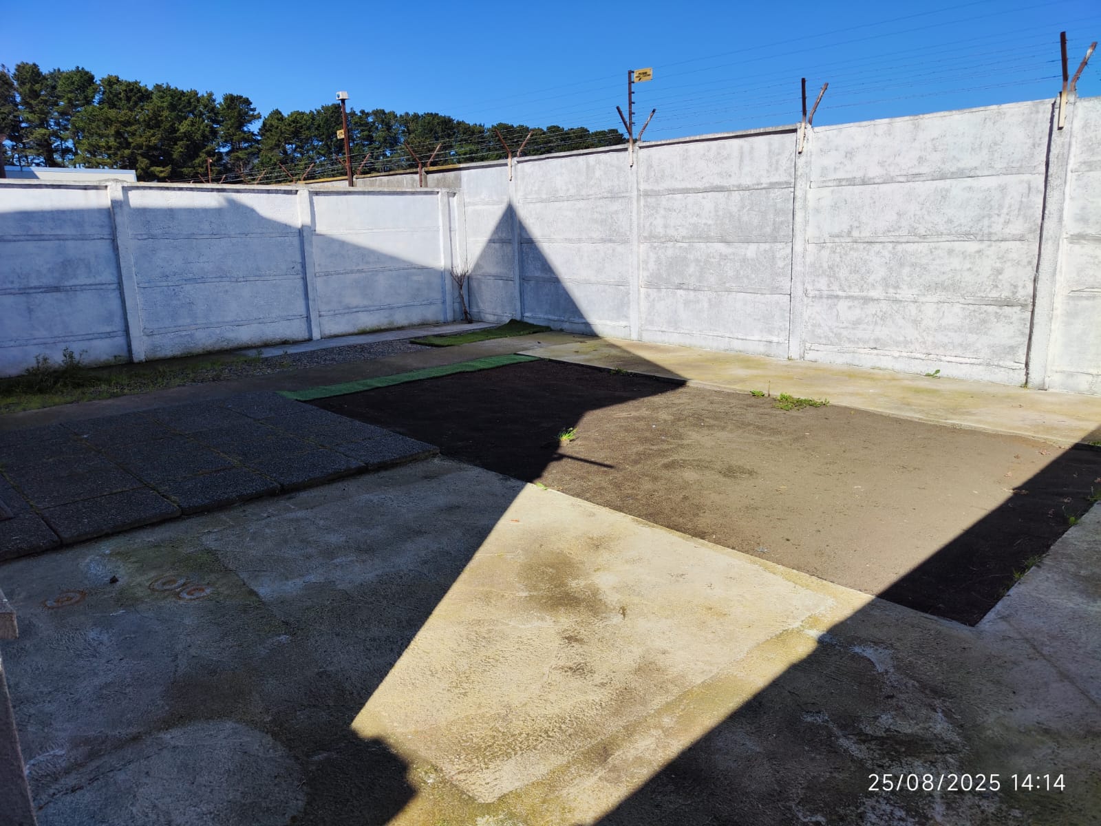 - Amplio patio libre y despejado con cemento y arena