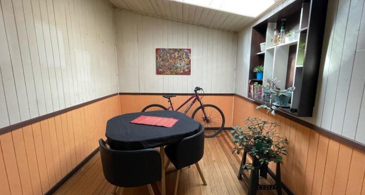 Casa principal con liviny y comedor amplio, cocina y dos dormitorios , dos baños. Con tres cabañas dúplex , independientes en sus segunods pisos con un dormitorio y un baño cada una, se comparte en el primer piso living-comedor y cocina.