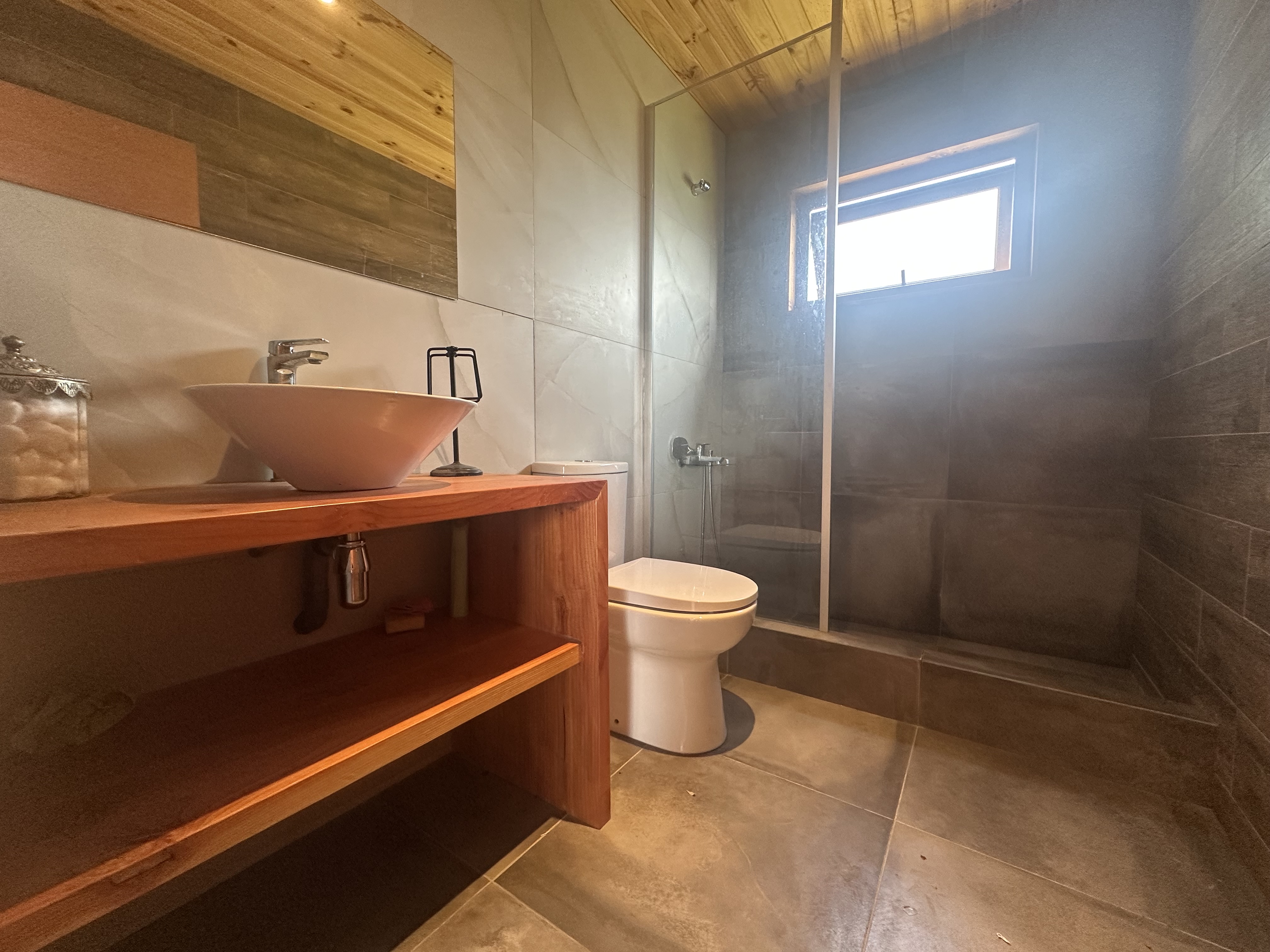 Esta preciosa casa, prácticamente nueva y lista para habitar, ofrece una superficie construida de 102 m² en un generoso terreno de 5000 m², proporcionando amplitud y privacidad. Cuenta con 2 confortables dormitorios, ambos en suite para mayor comodidad, y 2 baños completos. Dispone de espacio para estacionar hasta 3 vehículos, asegurando la conveniencia para usted y sus visitas.