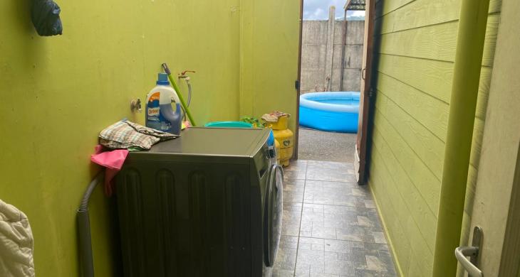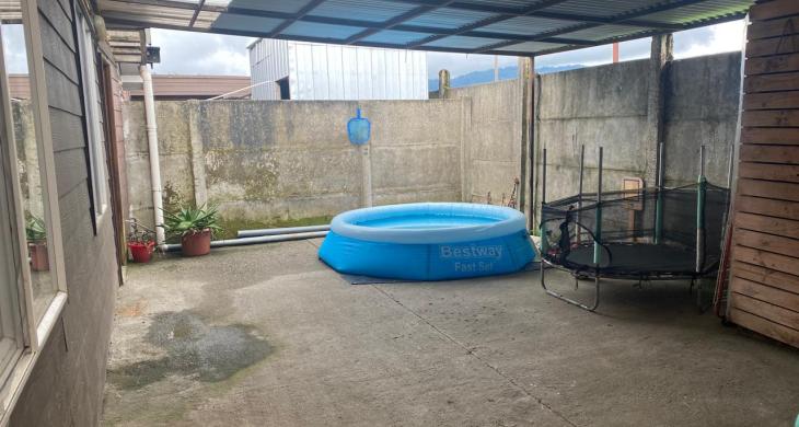 La casa es de un piso con una superficie de 56 m2 construidos y 15 m2 más de logia no regularizada, más patio techado y garage techado.