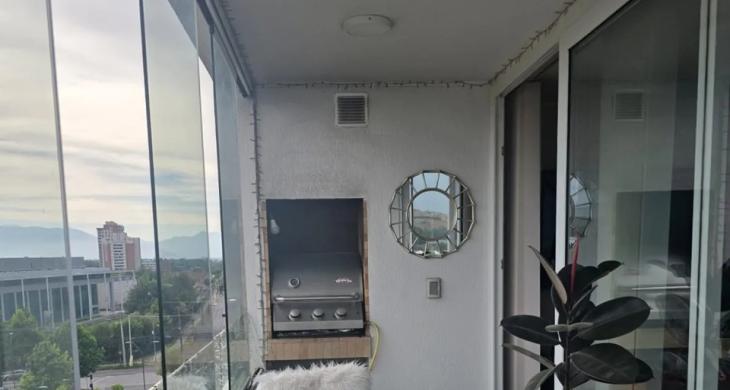 Características y terminaciones: piso gres porcelánico en todo el departamento. Barandas vidriadas en terrazas y ventanas termopanel con marco PVC. Shower door en baño principal.