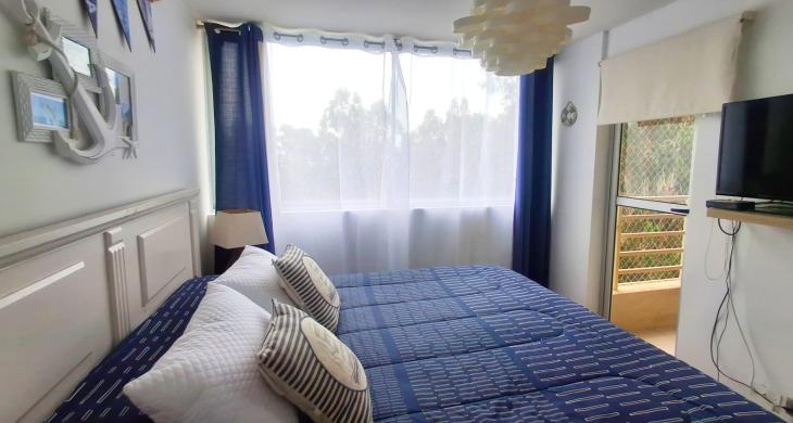 Se arrienda año corrido este hermoso departamento amoblado, en Condominio Costa Algarrobo Norte, recinto muy tranquilo y seguro. Orientación Poniente, piso 8, con linda vista a jardines interiores , piscina y a distancia el mar.