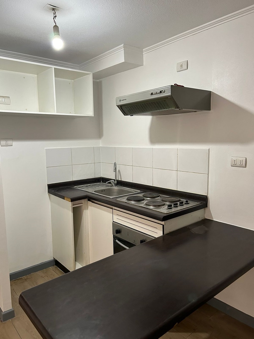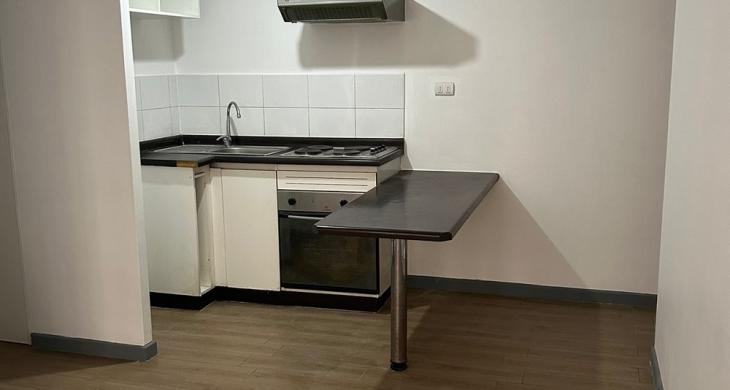 Consta de living comedor con salida a pequeña terraza, cocina americana amoblada y equipada con encimera y horno eléctrico.