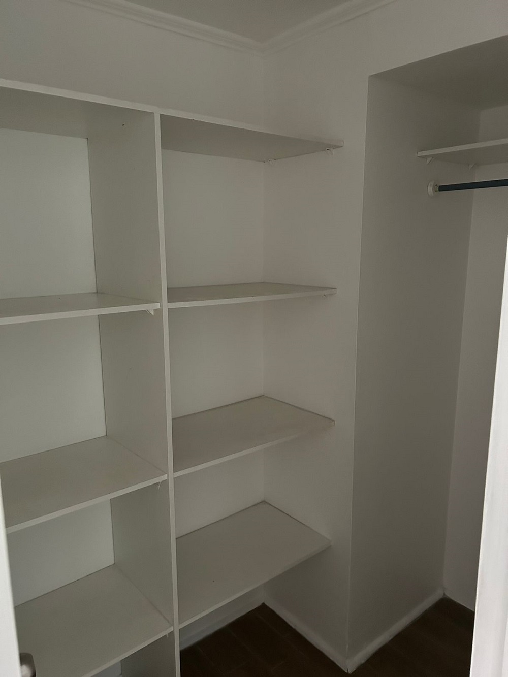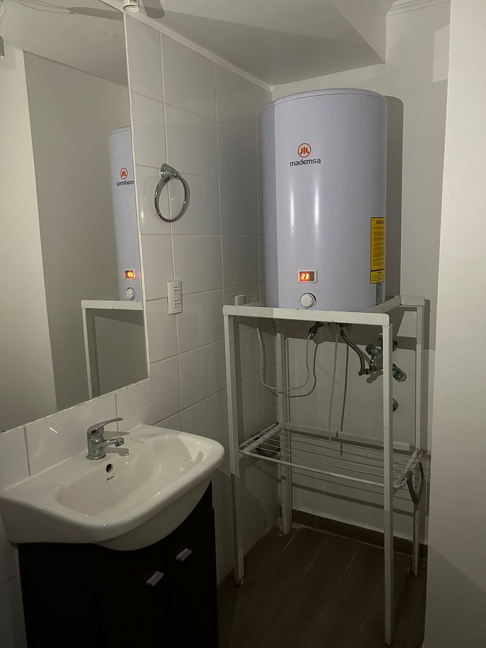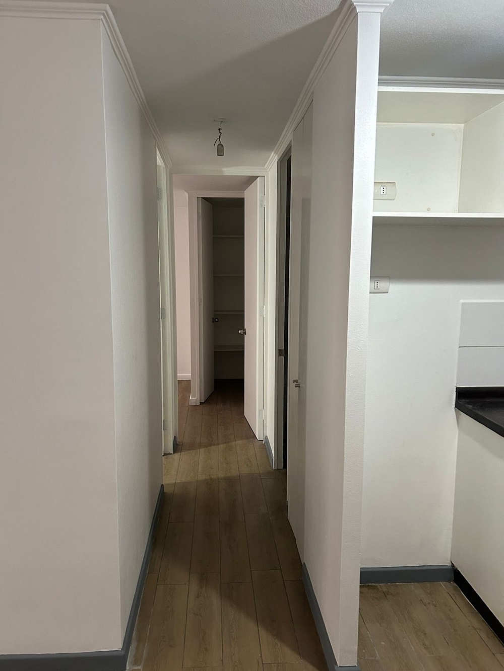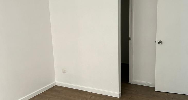 Dormitorio principal con walking closet, segundo dormitorio mediano para cama de una plaza ½ más velador y closet, un baño completo y termo eléctrico para agua caliente, lo que favorece en el pago de gastos comunes.