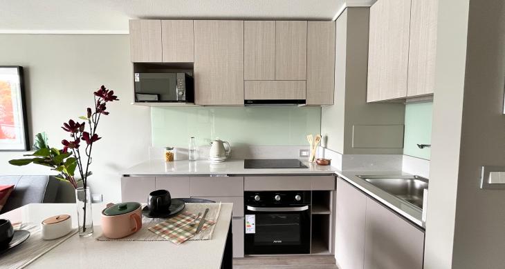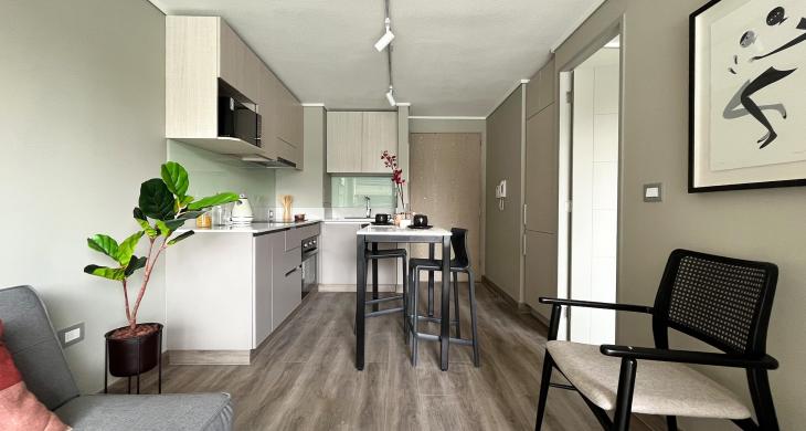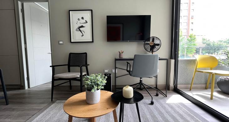 Esta propiedad, ideal para profesionales o parejas que buscan funcionalidad y estilo, cuenta con una distribución inteligente que maximiza cada metro cuadrado. La unidad dispone de un dormitorio amplio y un baño completo con terminaciones de calidad, ofreciendo un ambiente acogedor y privado. El diseño interior permite una fluidez natural entre los espacios, asegurando una habitabilidad óptima y un aprovechamiento superior de la luz, lo que convierte a este departamento en un refugio perfecto dentro de la ciudad.