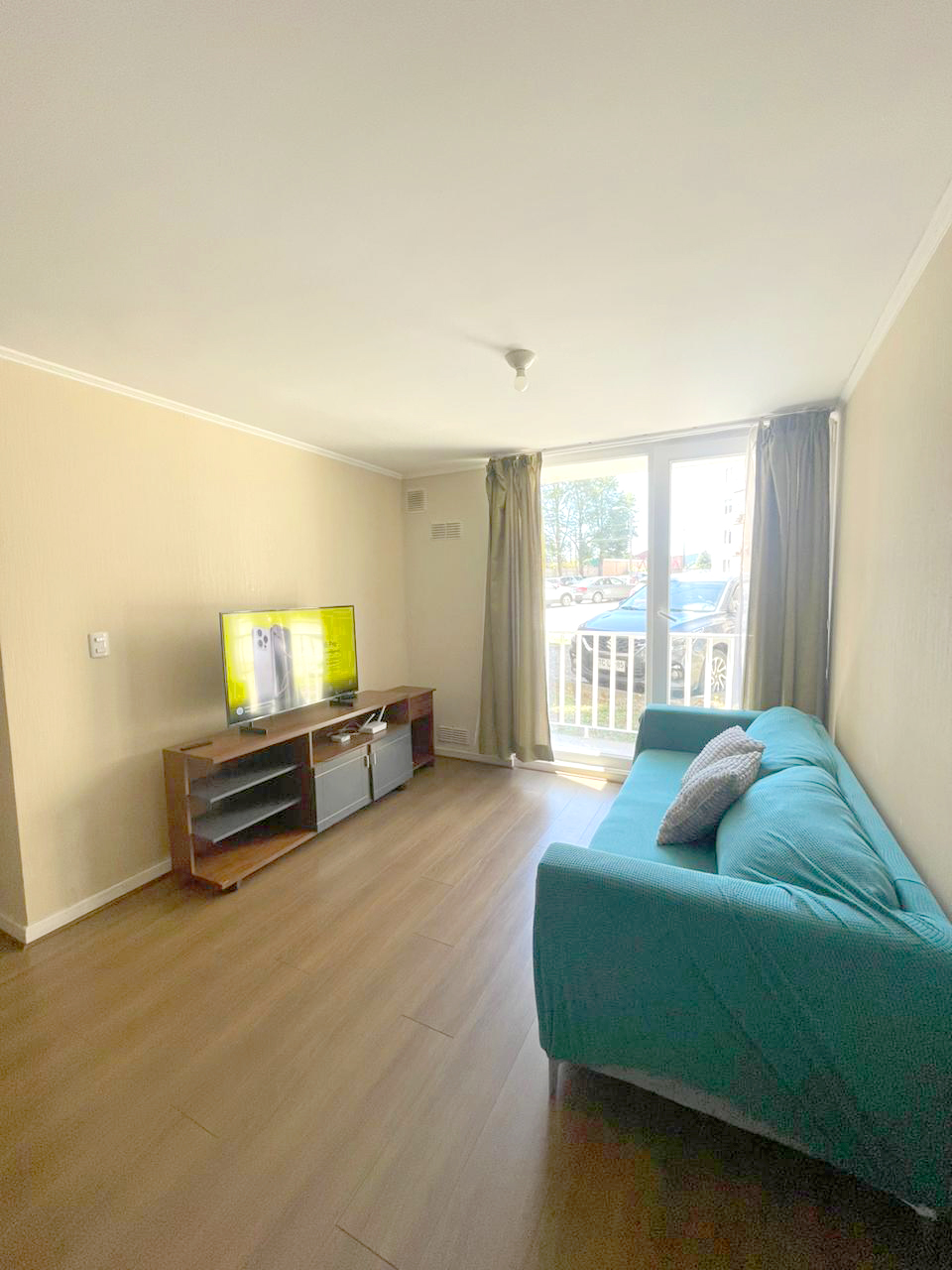 Piso flotante y alfombras en los dormitorios. Un estacionamiento.