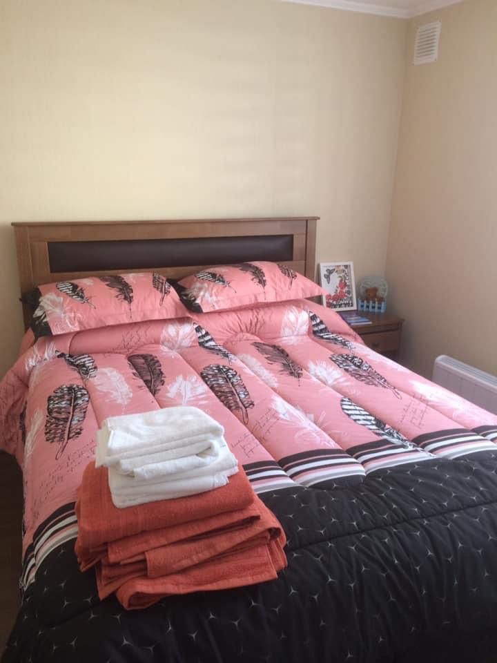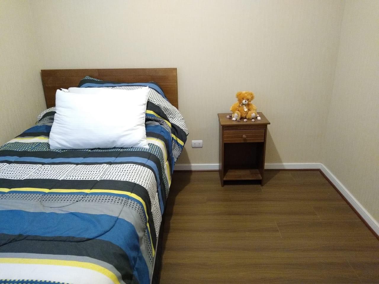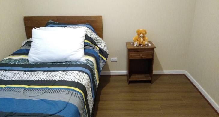 2 dormitorios, dormitorio principal con cama de dos plazas, velador, closet, segundo dormitorio con cama de plaza y media y velador, un baño completo con tina.