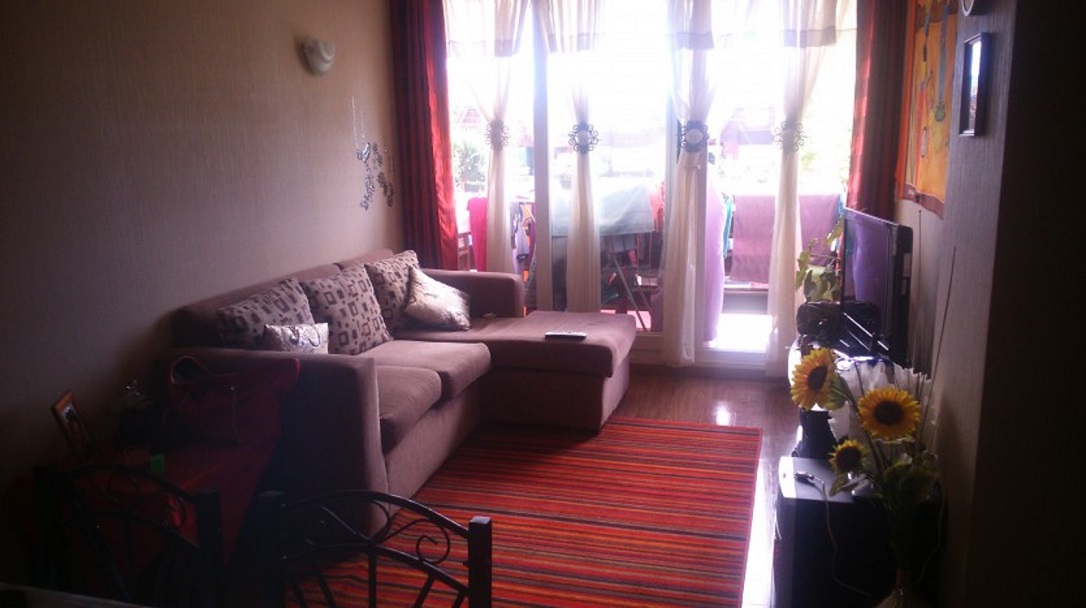Consta de 2 habitaciones, living, comedor, cocina un baño y balcón.