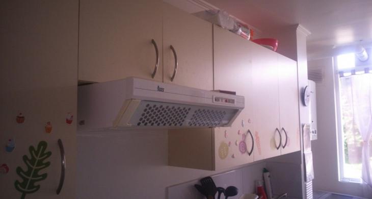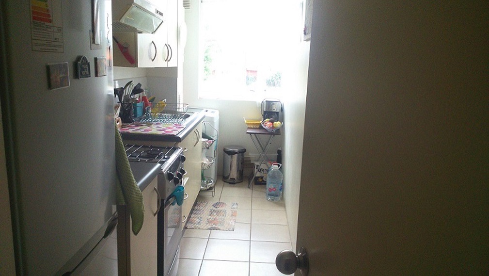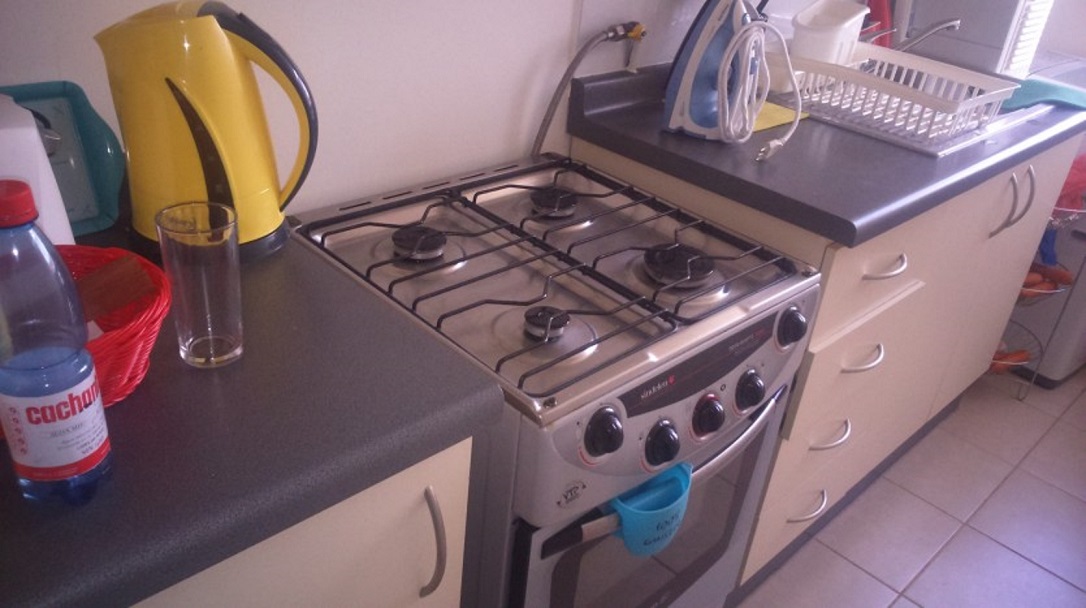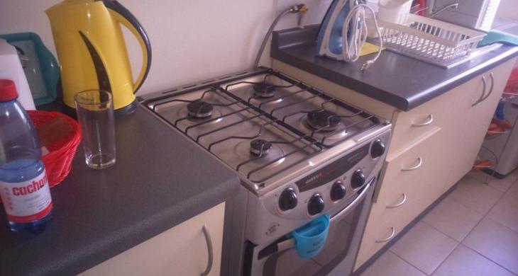 Cama matrimonial y cama de plaza y media, refrigerador, cocina, etc.