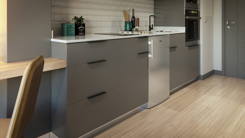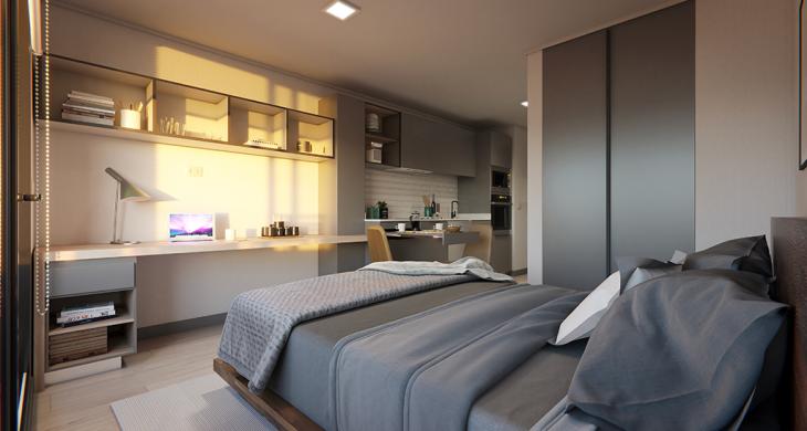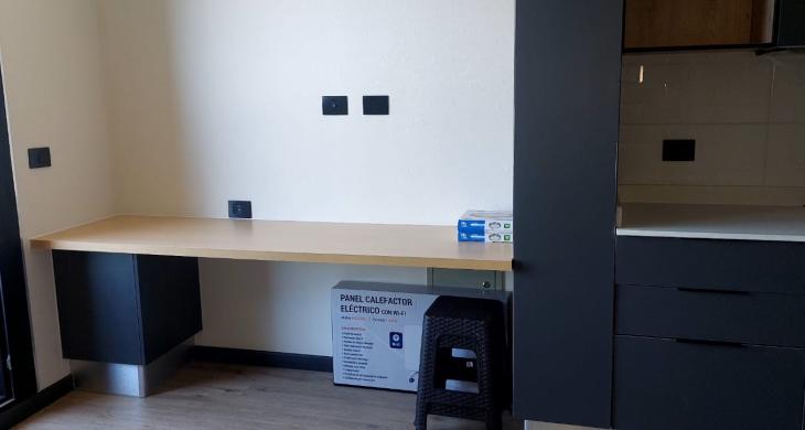 Ideal para estudiante o joven profesional que busque un lugar confortable y cómodo para vivir, cuenta con cortinas roller, apliqués, microondas y horno eléctrico.