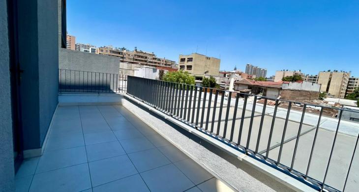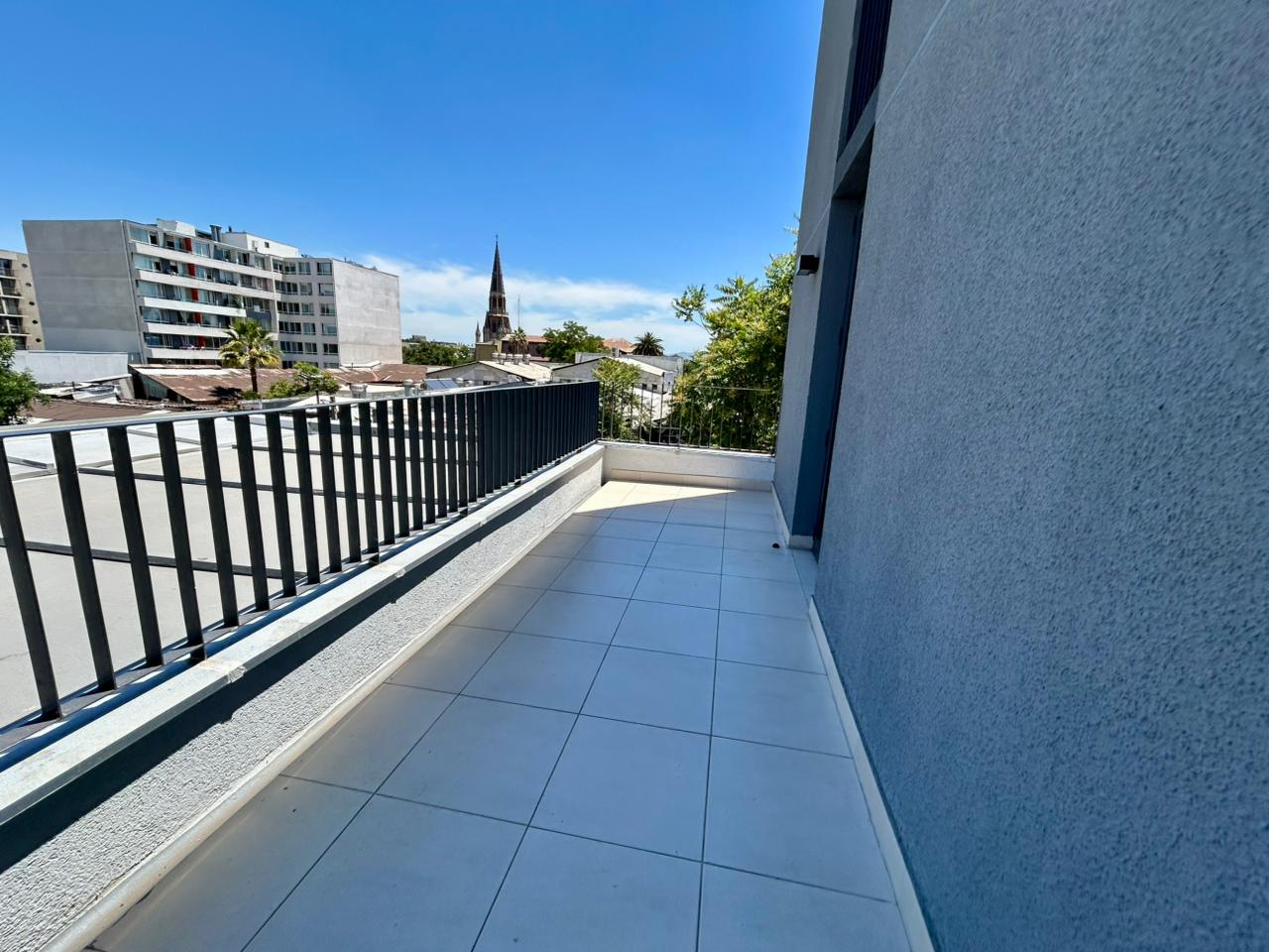 Se Arrienda Depto. de 1D1B con gran Terraza, ubicado en 4to. Piso, Orientación SurPoniente, hermosa vista, Cercano a Metro Santa Ana.