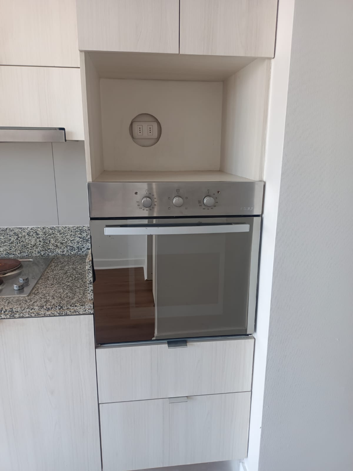 Oficina cuenta con cocina encimera, horno y campana.