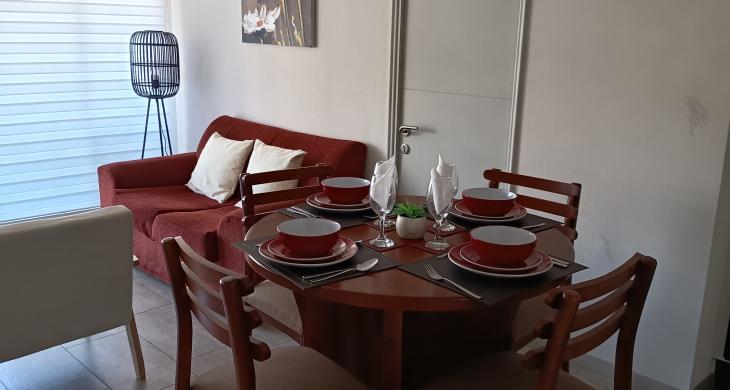 La propiedad se distingue por estar completamente amoblada y equipada, permitiéndole instalarse de inmediato y disfrutar de sus espacios. El edificio ofrece seguridad las 24 horas, brindando tranquilidad y protección a sus residentes. Con una distribución inteligente, este departamento maximiza el espacio y la funcionalidad, creando un ambiente acogedor y moderno. Es perfecto para grupos pequeños que buscan un lugar cómodo y bien ubicado.