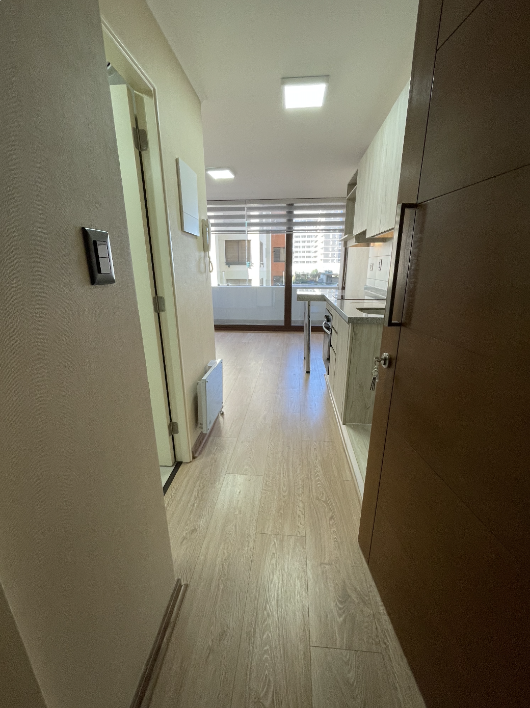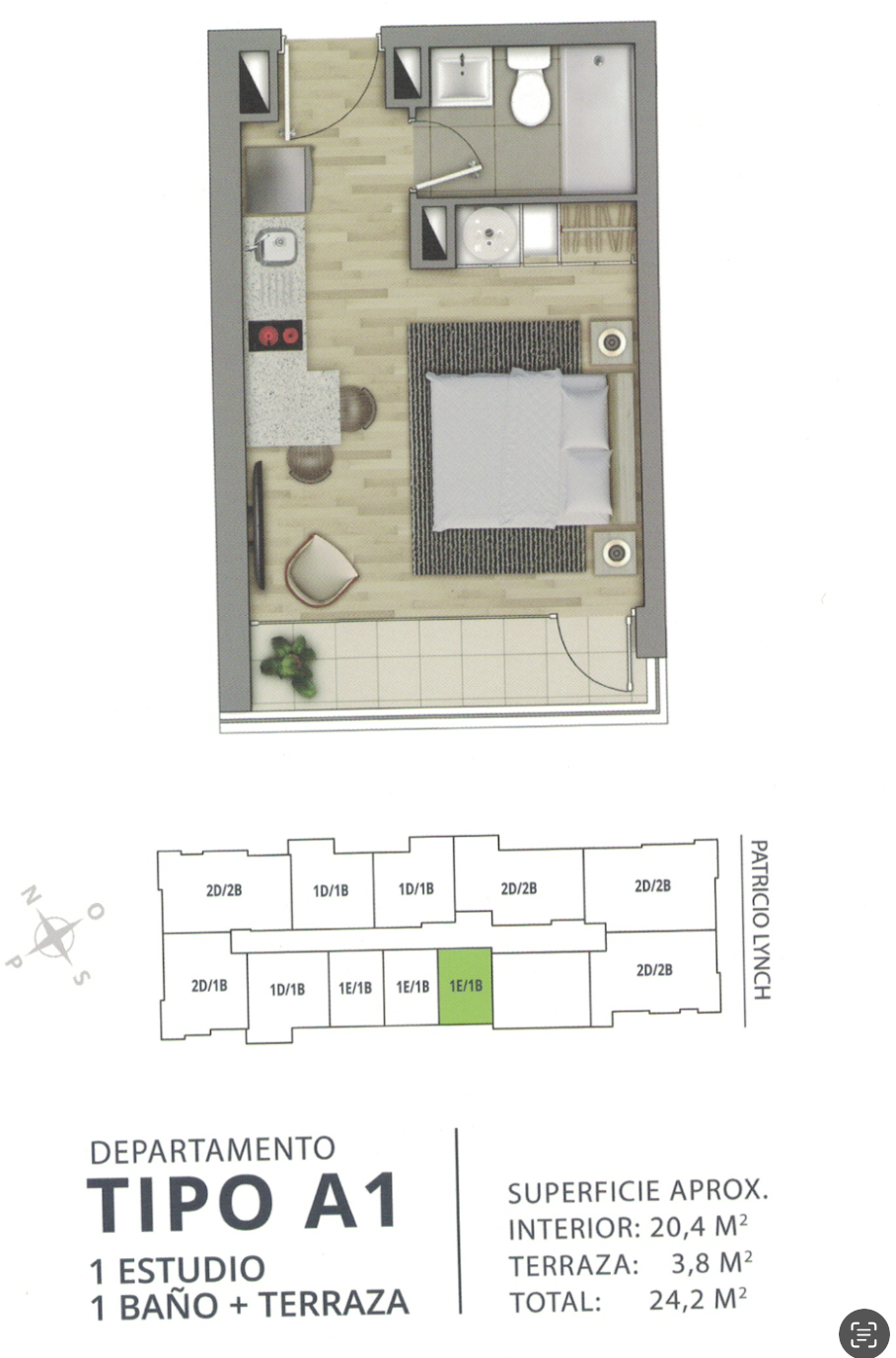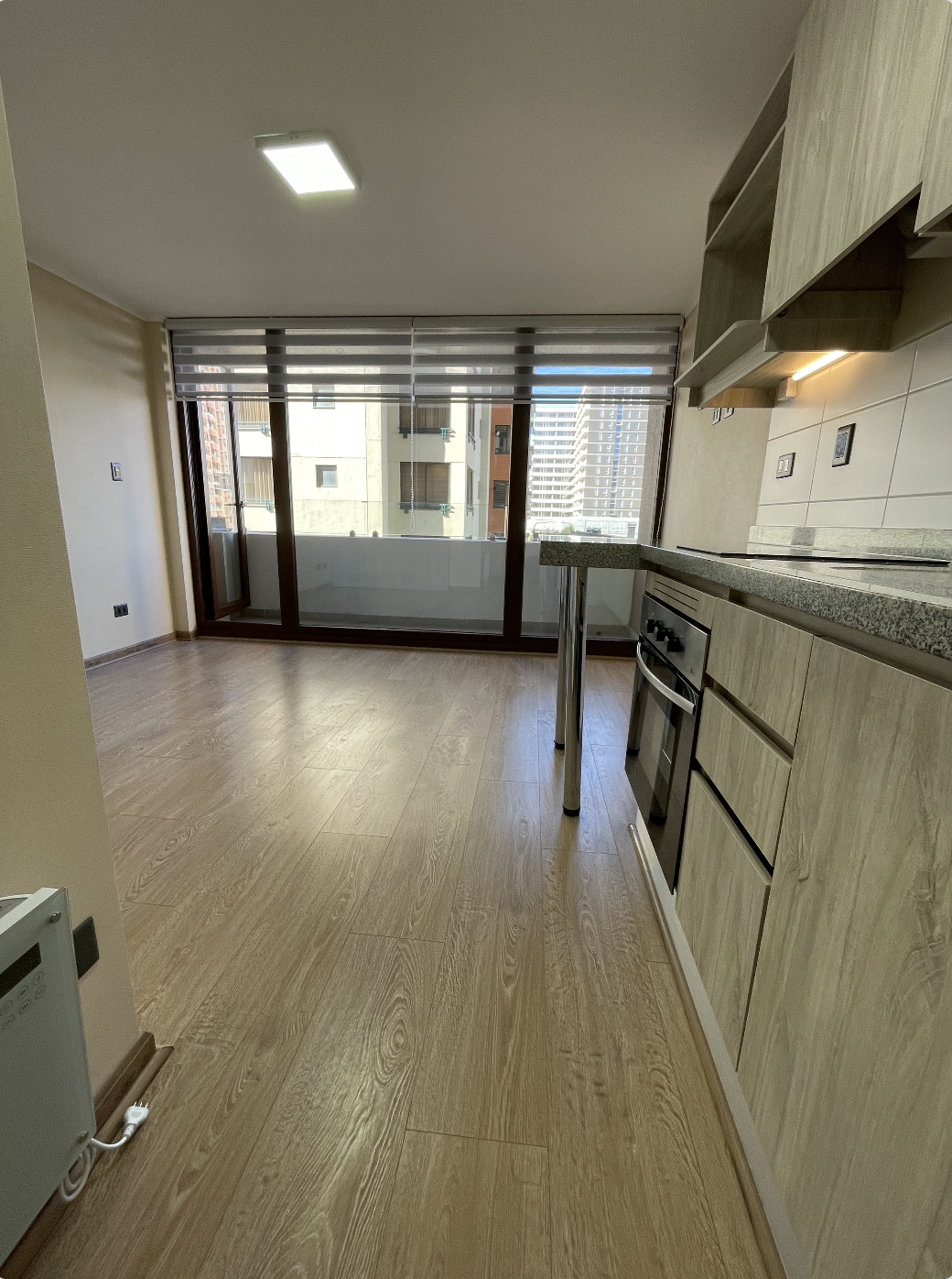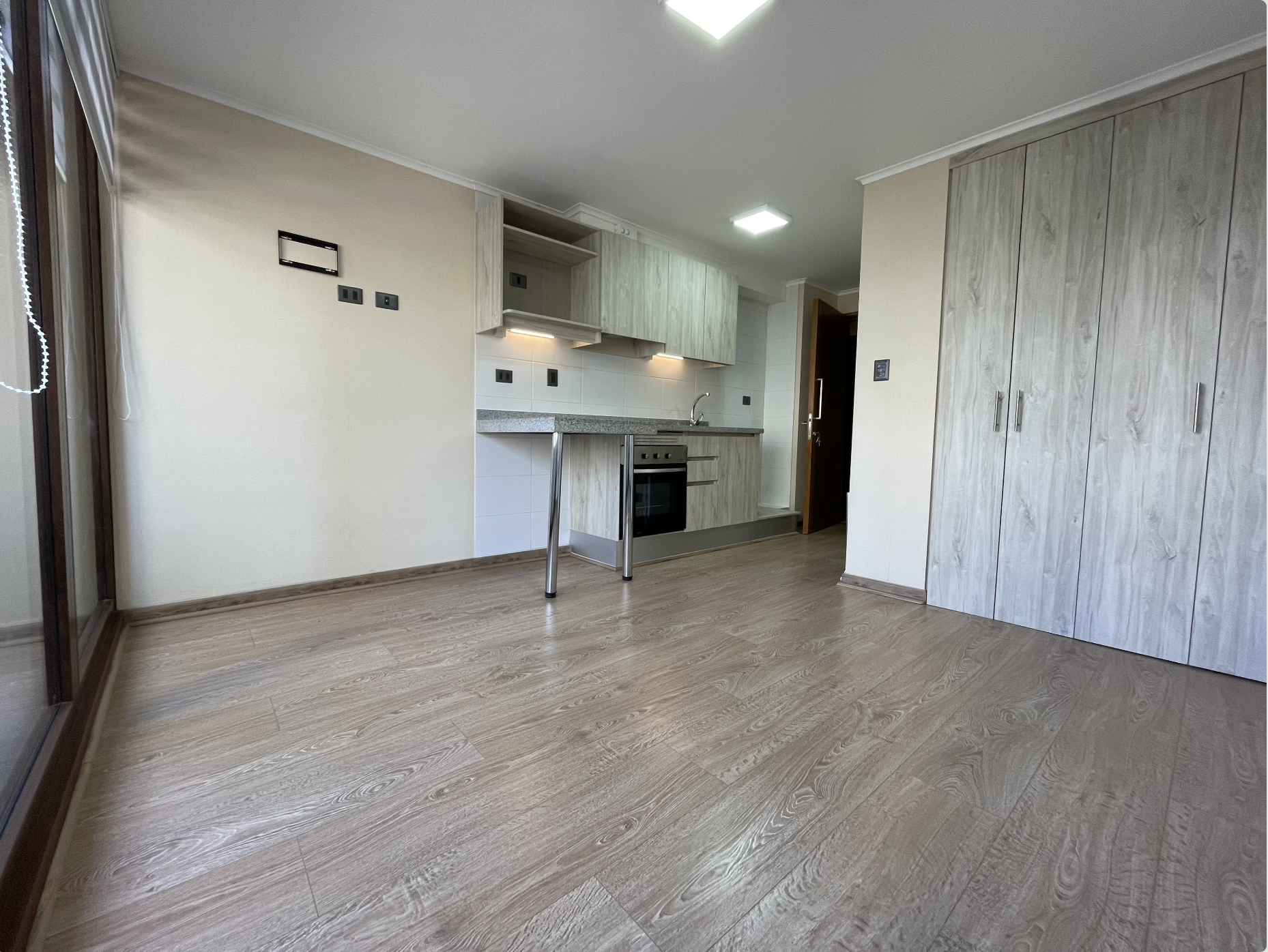 Se arrienda hermoso departamento Estudio semi nuevo de 24 m2 (1 Estudio + 1 Baño + Terraza), en Piso 4 Edificio Centro Lynch II, Calle Lynch N.º 742, en centro de Temuco, Edificio full eléctrico con envolvente térmico.