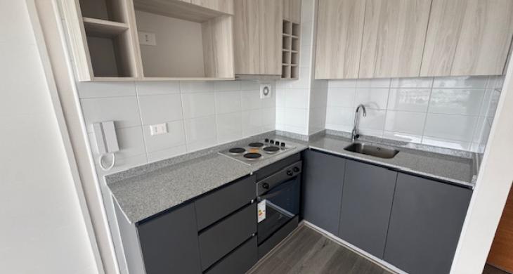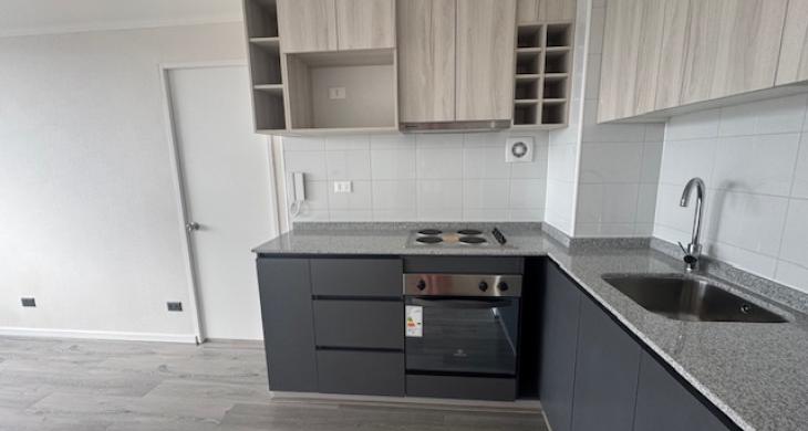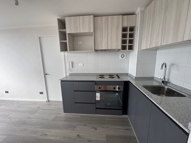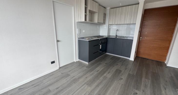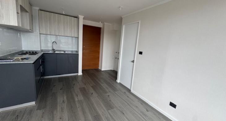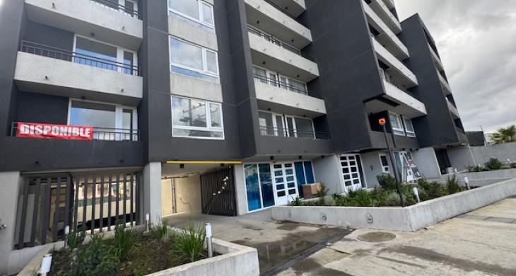 $620.000 arriendo departamento nuevo , living comedor con cocina integrada , instalación lavadora , dos dormitorios ambos en suite , cada uno con clóset , salida al balcón , 53 m2 ; estacionamiento y bodega.