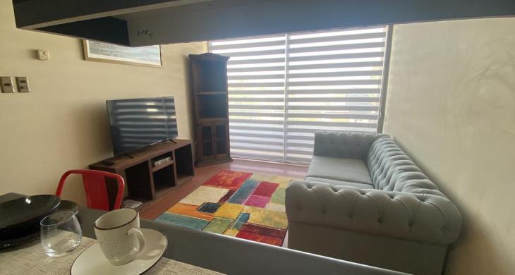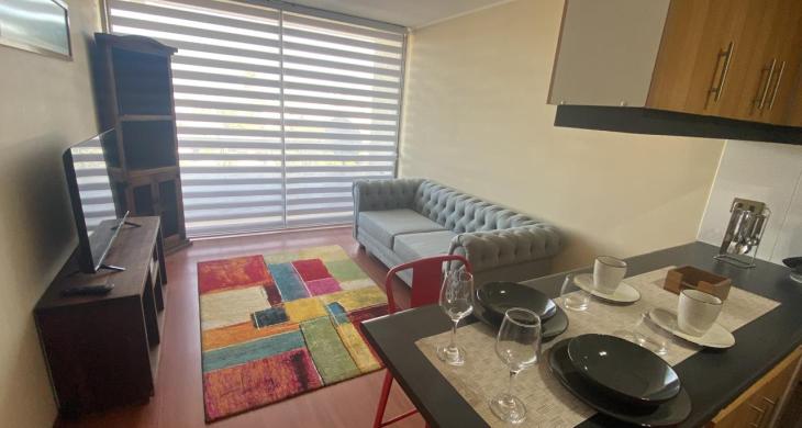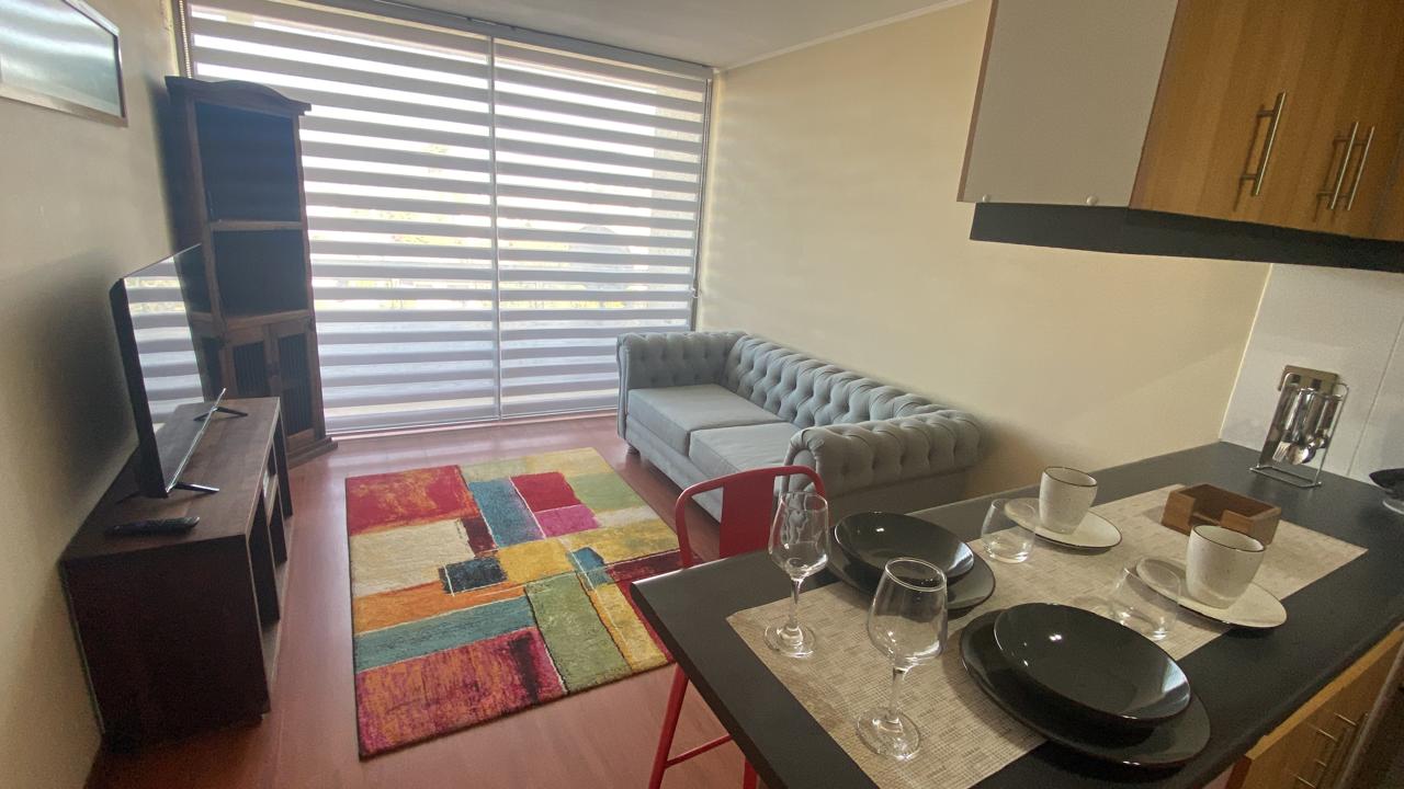 Amplio departamento con living comedor salida a terraza; todo el departamento con piso flotante; cocina amoblada y equipada ; 1 amplio dormitorio en suite ; baño completo con sector lavadora.
