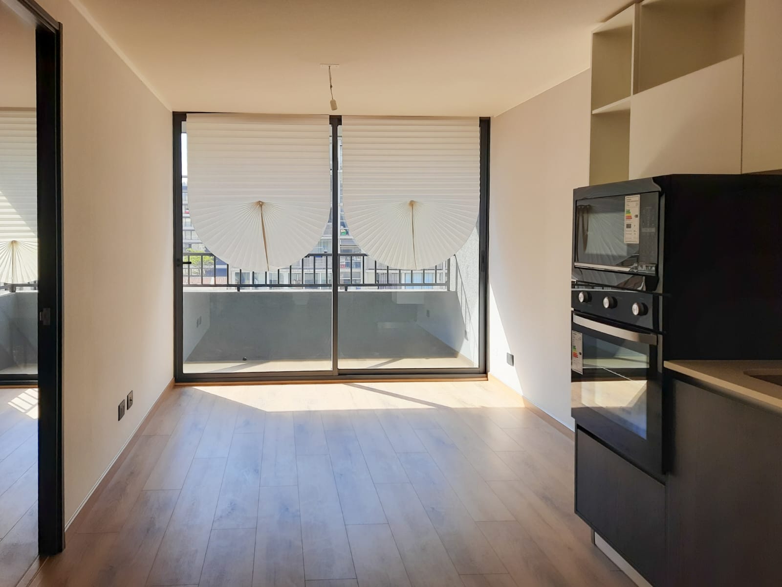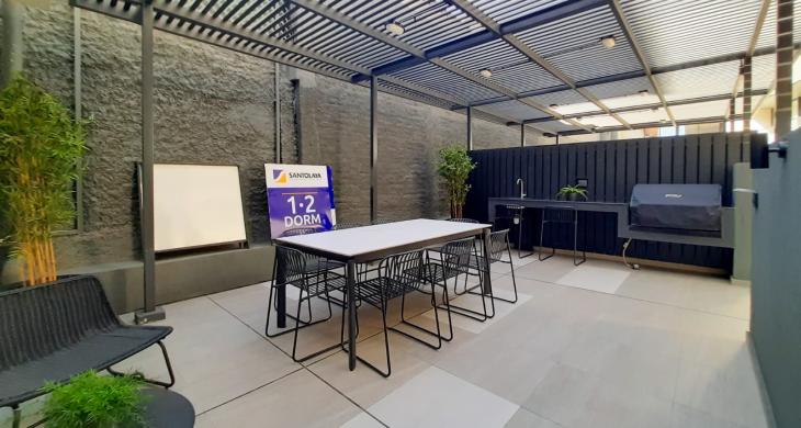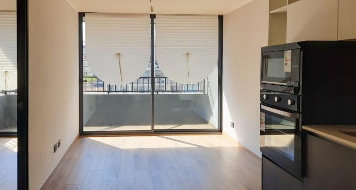 Disfruta de la conveniencia de vivir en el corazón de Santiago, con acceso inmediato a todo lo que necesitas, en un entorno moderno y seguro. Este funcional departamento, cuenta con cocina integrada equipada con encimera,campana, microondas y horno electrico. Conexion a lavadora, agua calienta por caldera. Ubicado en el sexto piso con orientación norte de un edificio construido en 2025, este departamento se caracteriza por su diseño moderno y acabados de alta calidad.