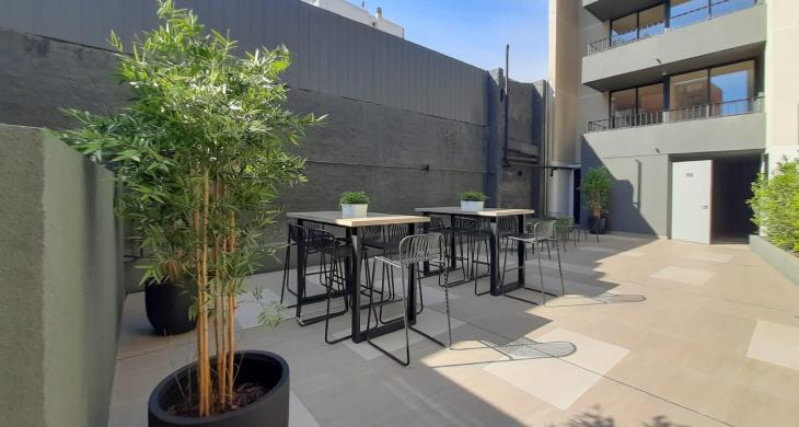El edificio ofrece seguridad las 24 horas y amenidades como cowork, salon de uso multiple, quinchos, gimnasio, lavandería y bicicleteros.