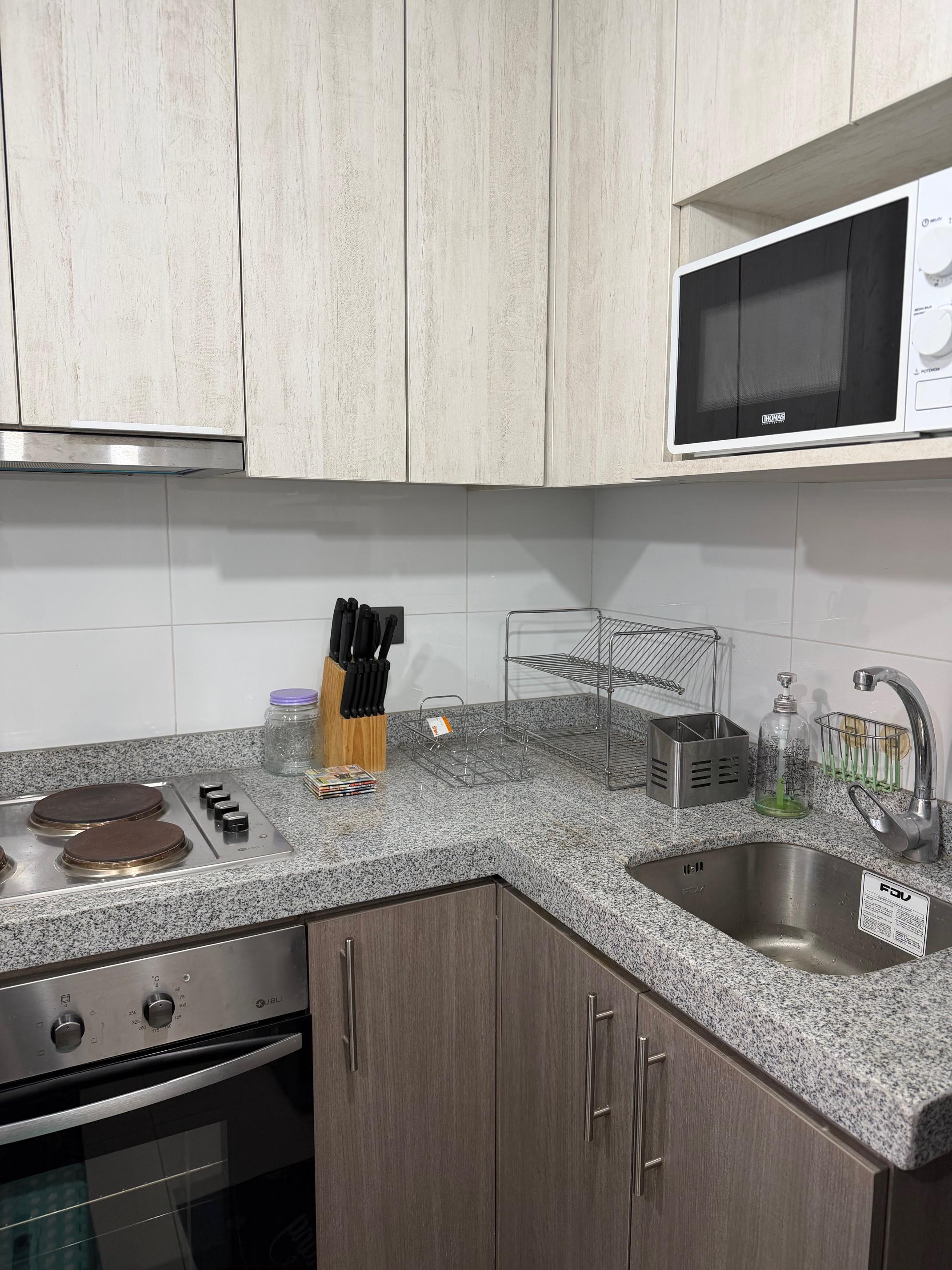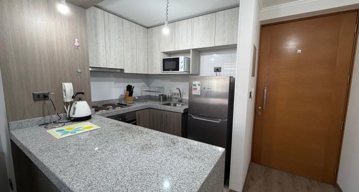 Entre sus características diferenciadoras, destaca que el departamento se entrega completamente amoblado, con un estilo sobrio y profesional que se adapta a diversos perfiles de arrendatarios. La cocina se encuentra equipada, permitiendo que la mudanza sea un proceso ágil, sin preocupaciones y de disponibilidad inmediata. Además, la seguridad es una prioridad en este conjunto habitacional, ofreciendo vigilancia controlada y conserjería las 24 horas del día, lo que garantiza un entorno tranquilo, profesional y resguardado para usted y sus pertenencias en todo momento.