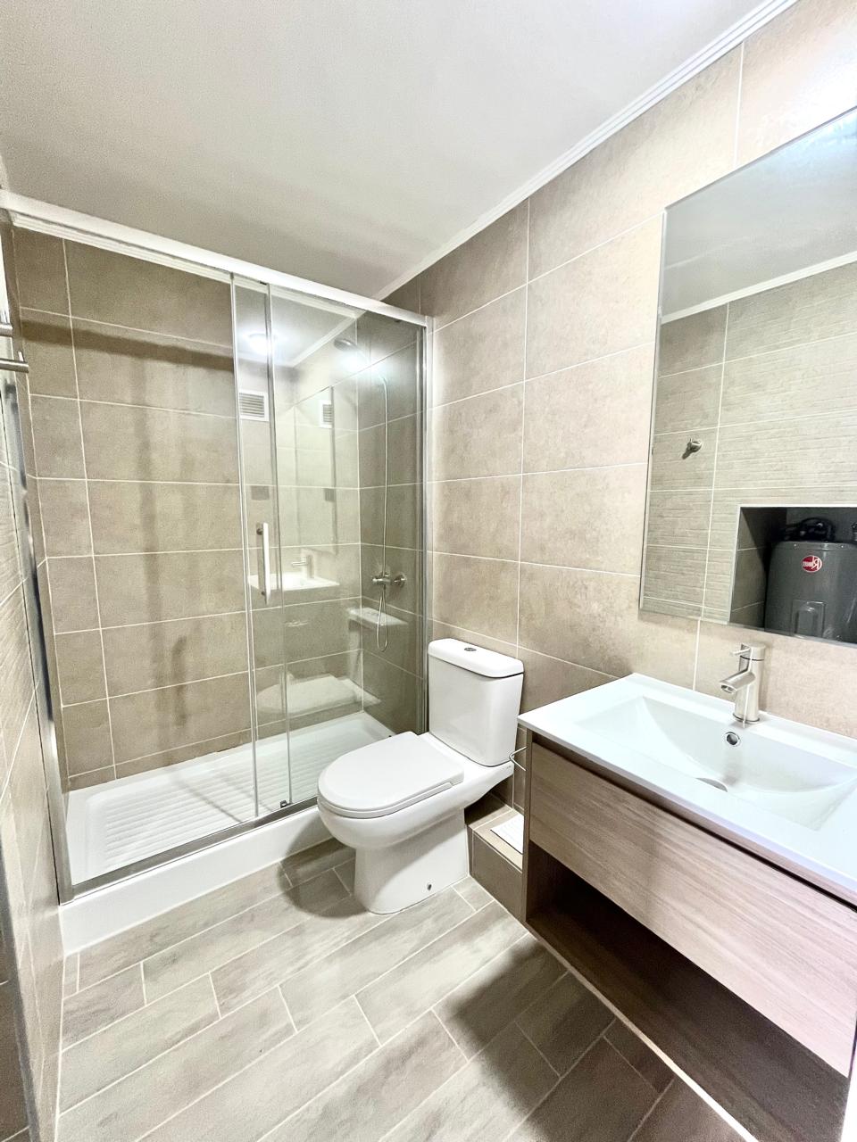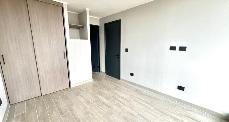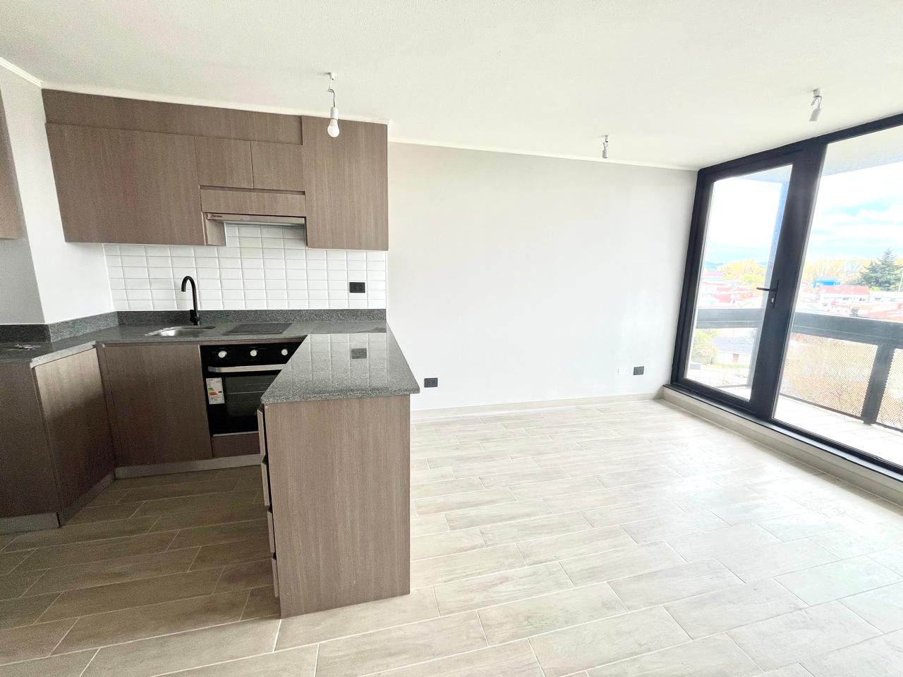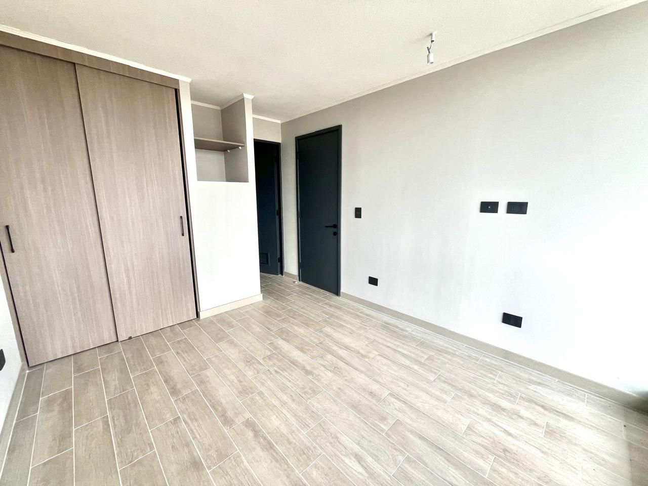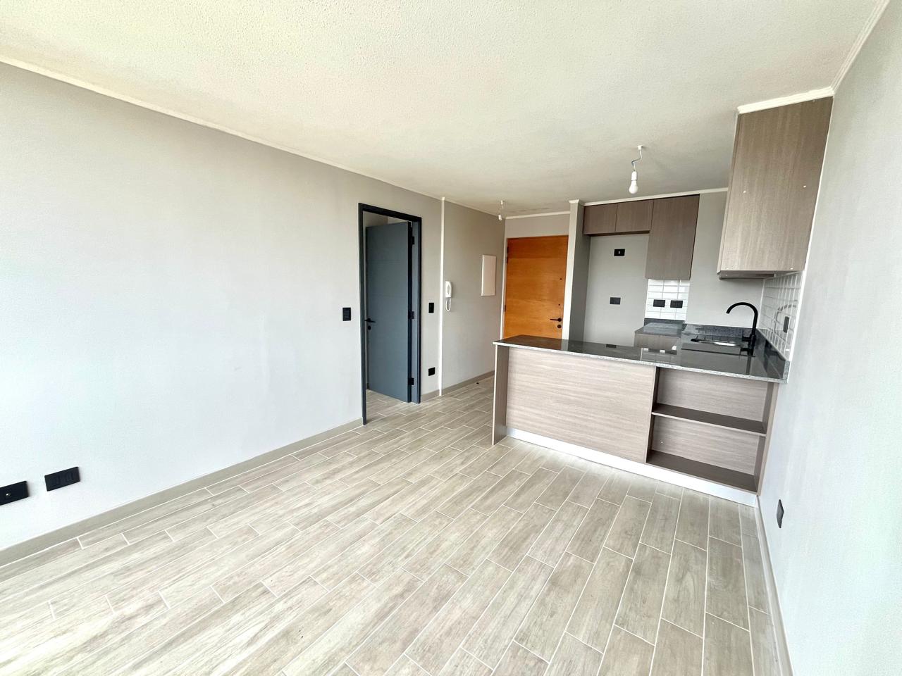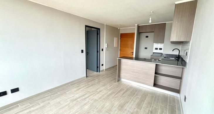 La distribución consta de cocina integrada con muebles y cubierta de granito, campana de extracción, horno y encimera eléctricas. Dormitorio en suite con clóset. Baño con termo eléctrico. Living comedor con salida a terraza. Pisos de porcelanato y ventanas de termopanel. Full eléctrico. El edificio cuenta con acceso controlado y portería 24 hrs, ascensor, lavandería, sala cowork multiuso, quincho. Zona para bicicletas.