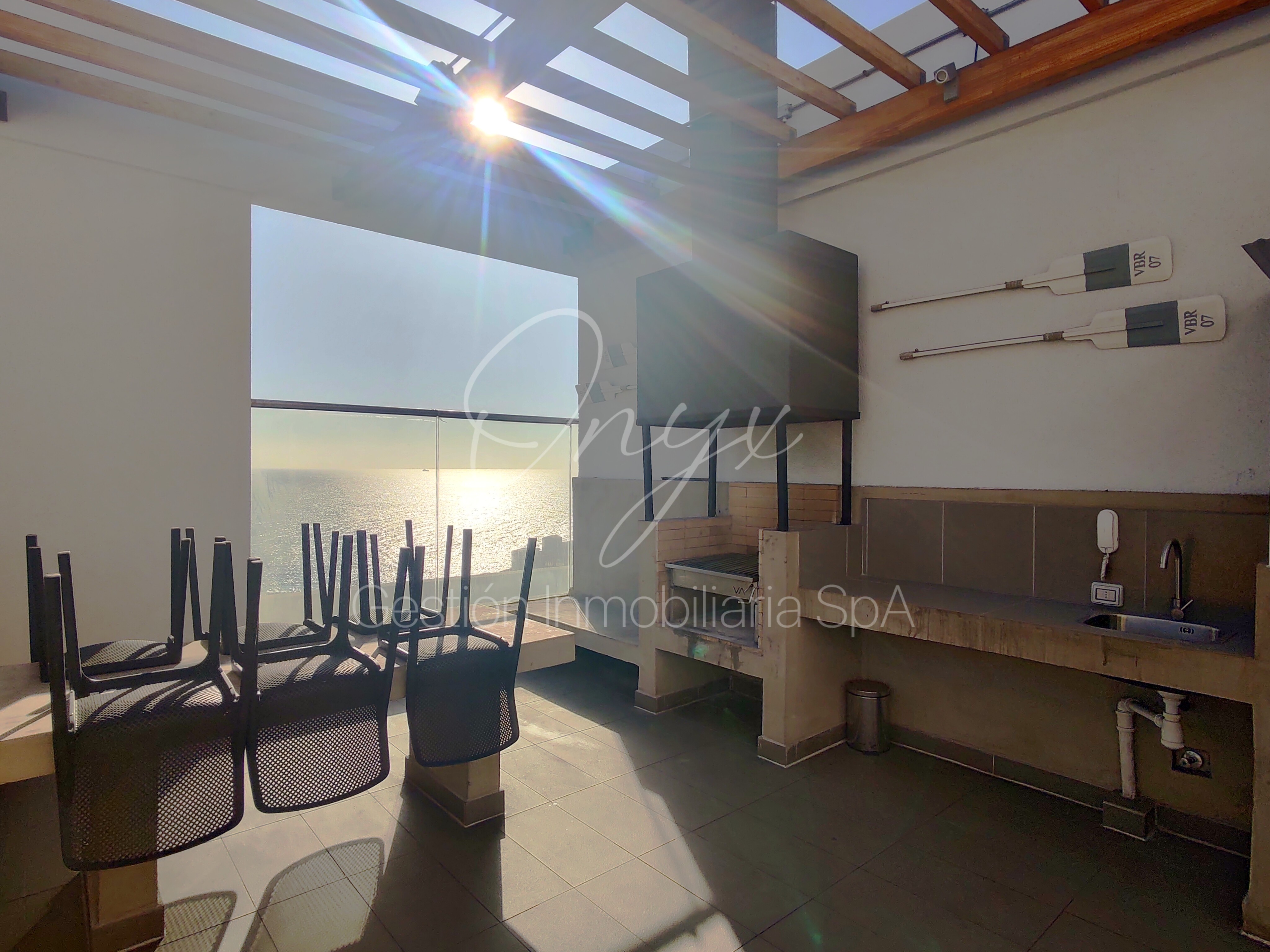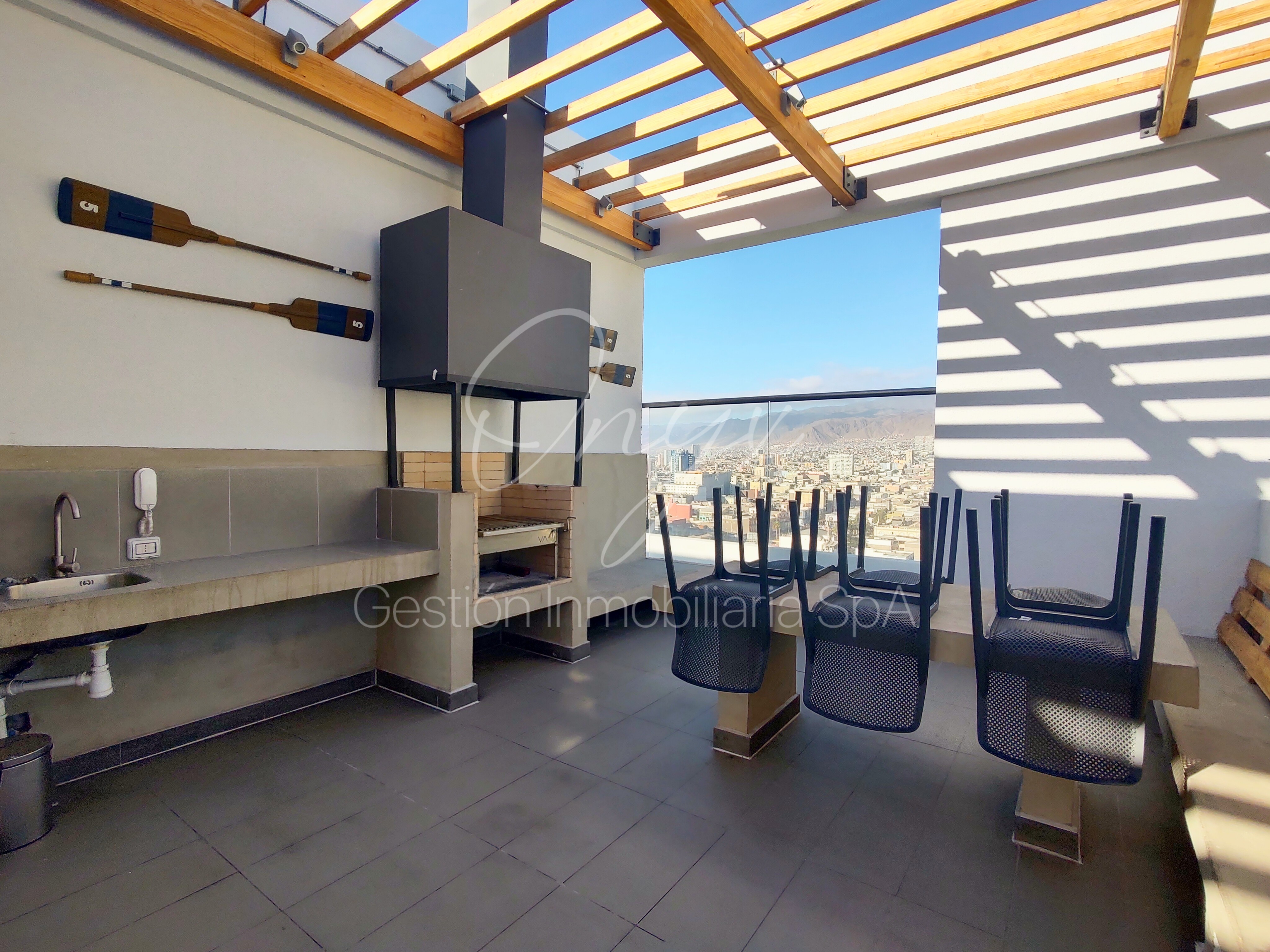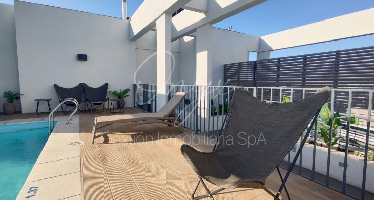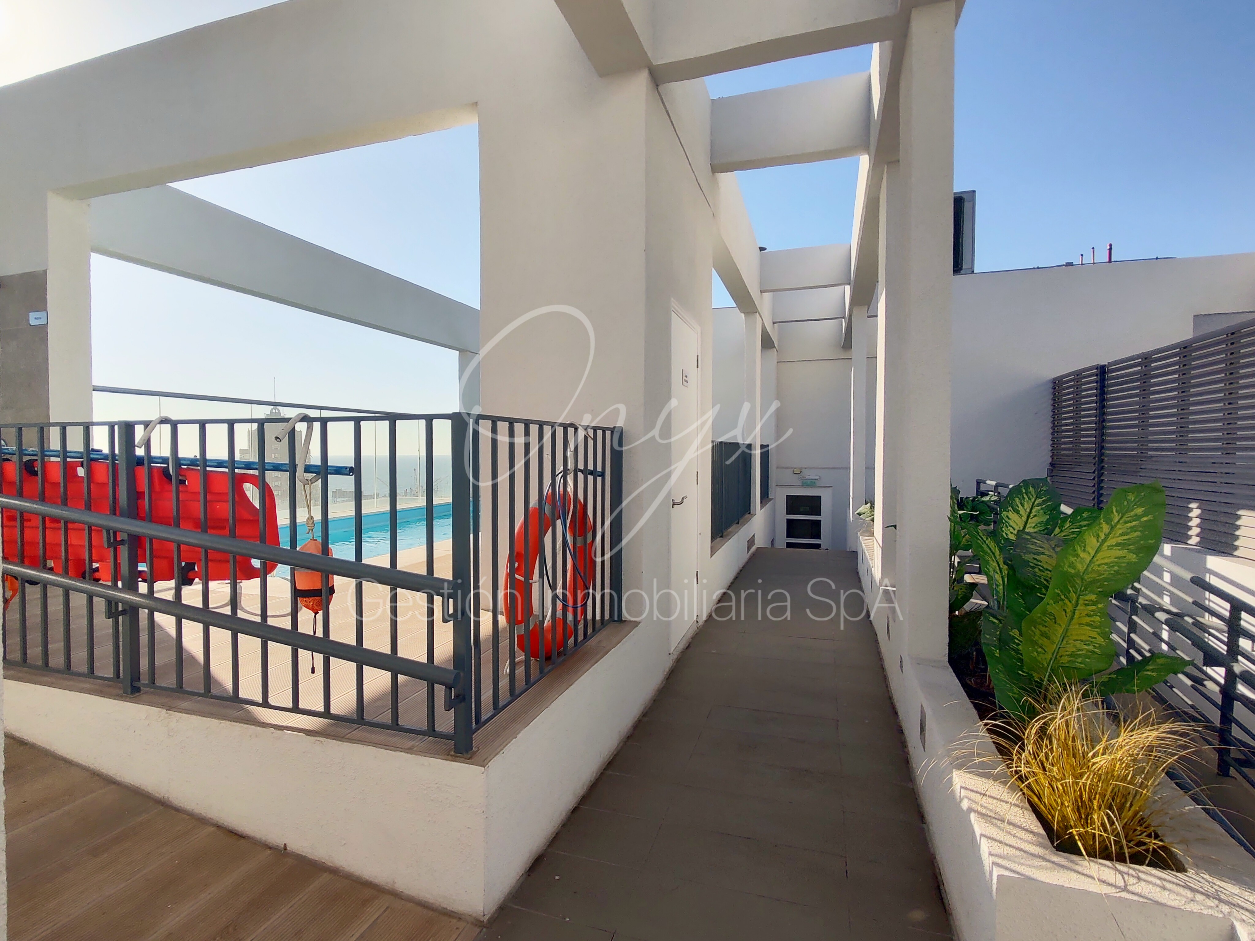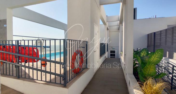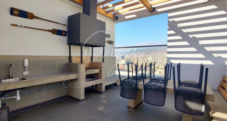 El edificio cuenta con conserjería las 24 horas, gimnasio equipado, zona de quinchos y piscina panorámica.