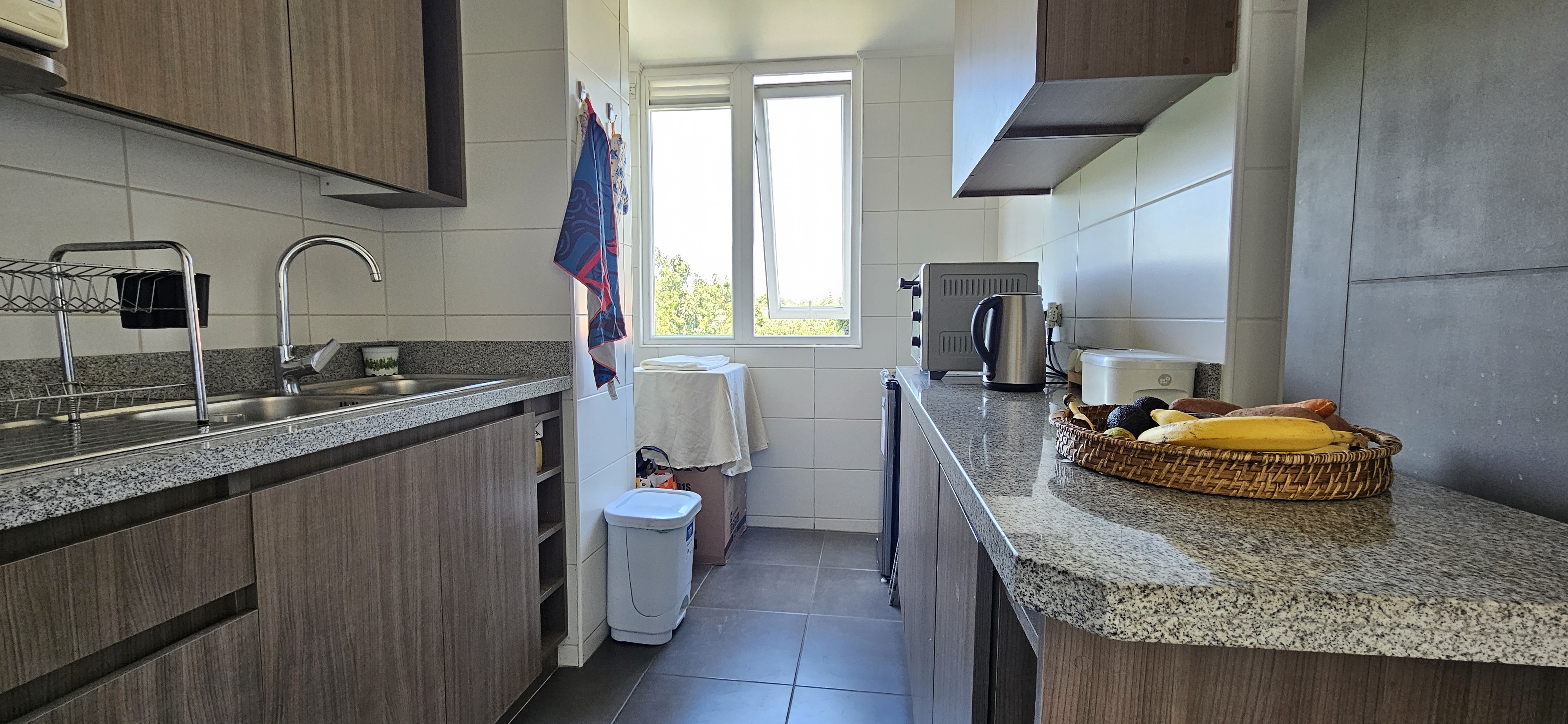 Cocina amueblada, encimera, horno y campana