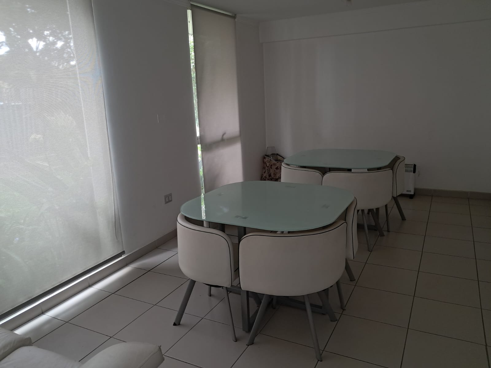 Cómodo living comedor con acceso a terraza, con vista a la piscina del condominio.