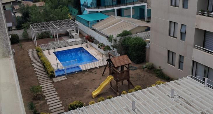El edificio ofrece un ambiente seguro y tranquilo, conserjería 24/7, quincho y piscina.