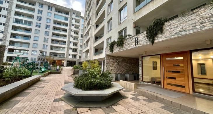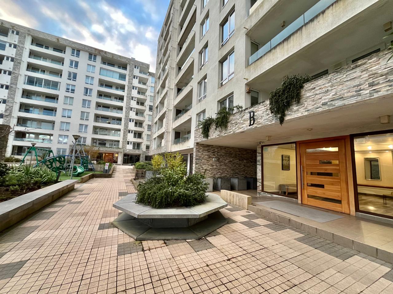 Condominio con ingreso controlado 24 hrs, áreas verdes, juegos para niños, piscina, gimnasio, estacionamiento de visitas y zona para bicicletas.