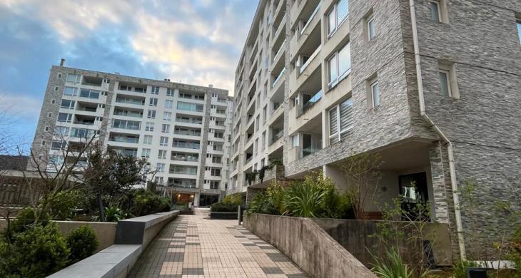 Hermoso Departamento de 80 m² en Condominio Parque Río Cruces, Isla Teja. La distribución contempla dos dormitorios, incluyendo un dormitorio en suite. Cocina equipada con horno eléctrico, encimera a gas y campana de extracción. Calefacción central y radiadores en todas las habitaciones. Cuenta con dos baños completos. Estacionamiento, bodega y logia. El edificio cuenta con ascensor y clave de acceso.
