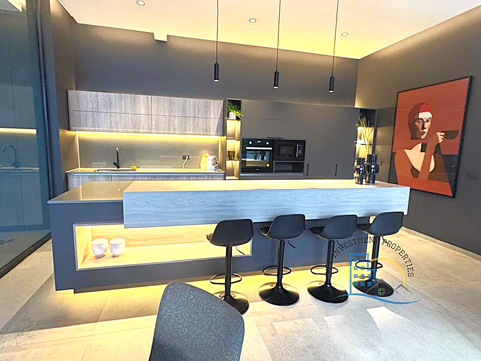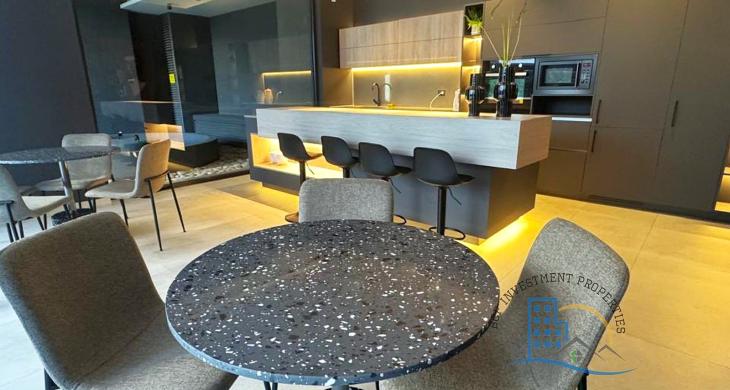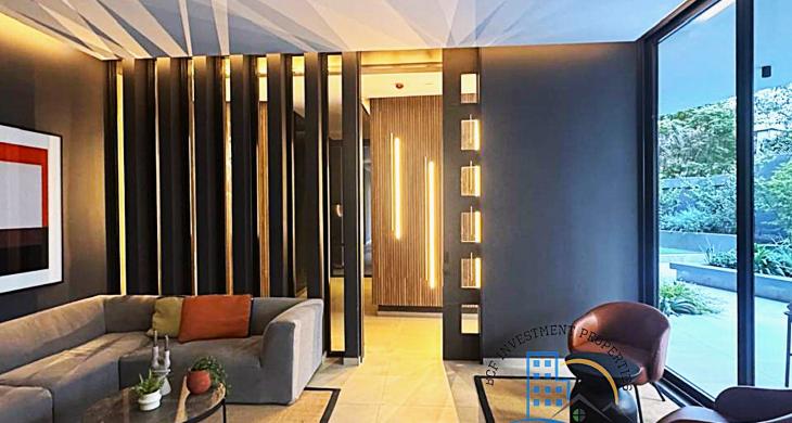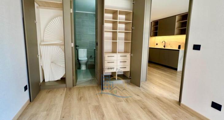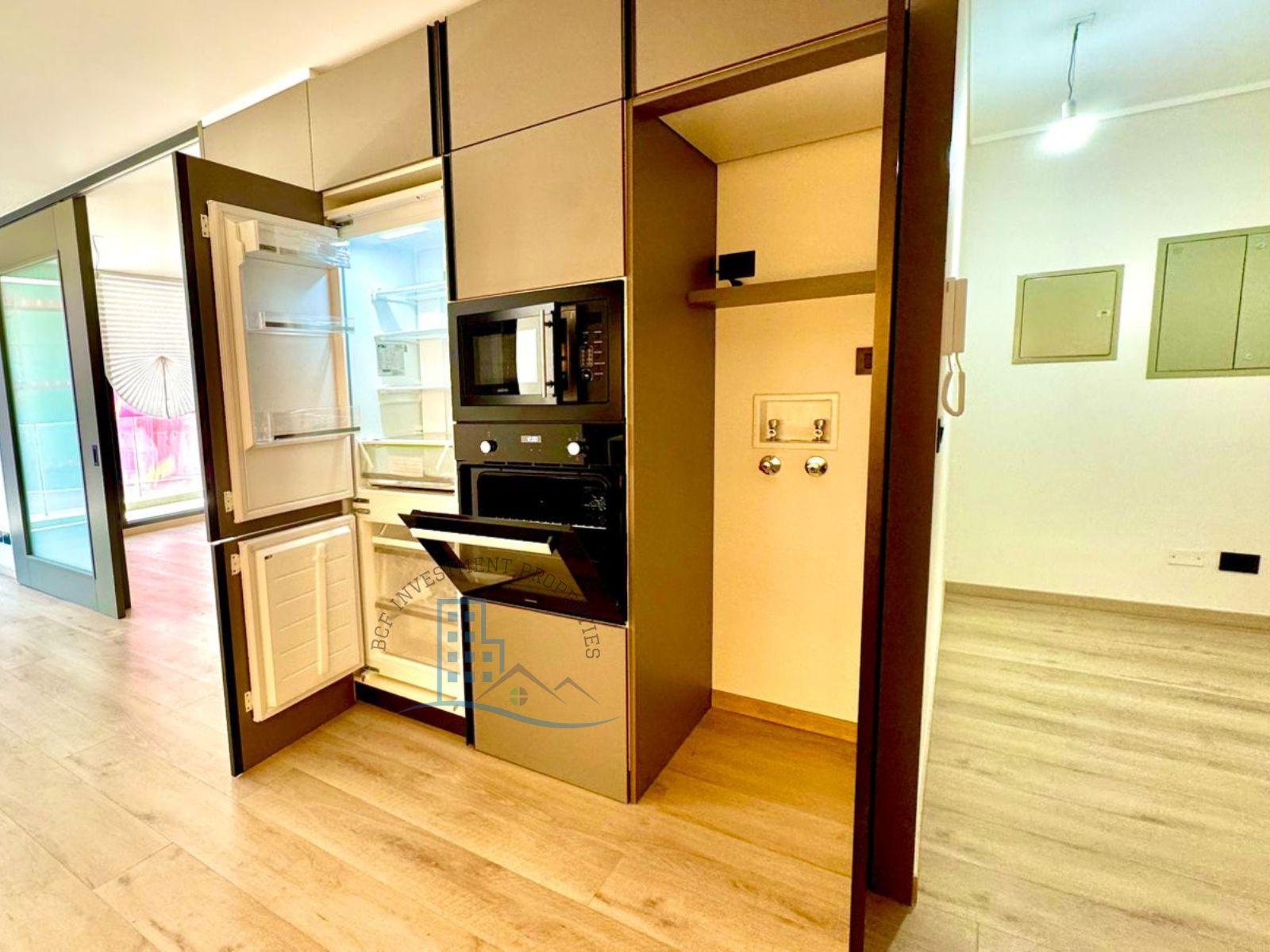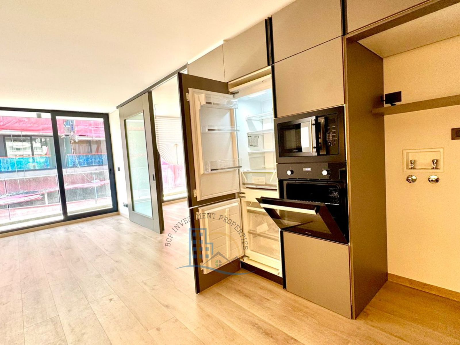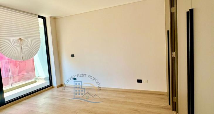 Puerta de acceso enchapada PVC. Cocina full equipada: encimera vitro cerámica, microondas, horno eléctrico, cocina mesón de cuarzo, refrigerador, freezer tamaño mediano, ambos empotrados, ventana termo panel con marco PVC., piso vinílico cocina, dormitorio, closet, baño con shower door, vanitorio con dos cajoneras, piso gres porcelanato en terraza y baño, Grifería en baños y cocina importada, incluye luminaria, ventanal con barras de cortinas. Espacio pensado para home office y tener tu espacio de oficina en casa.