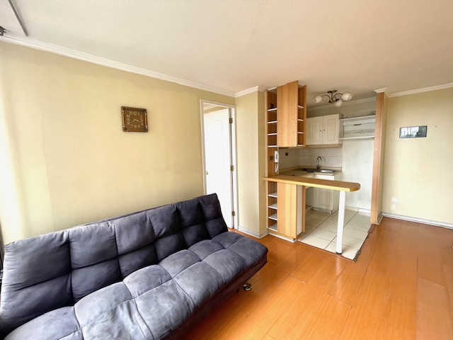Acogedor departamento a pasos de estación de metro Santa Lucía; 1 dormitorio, walking closet, 1 baño, cocina americana con encimera y horno eléctrico. Se encuentra en condominio con seguridad las 24hrs, sala de eventos y lavandería. Unicación insuperable a pasos de estación de metro Santa Lucía, parque cerro Santa Lucía, centros de salud, colegios, barrio Lastarria, centros de educación superior, comercios y teatro municipal; muy buen estado de la propiedad, disponibilidad inmediata.