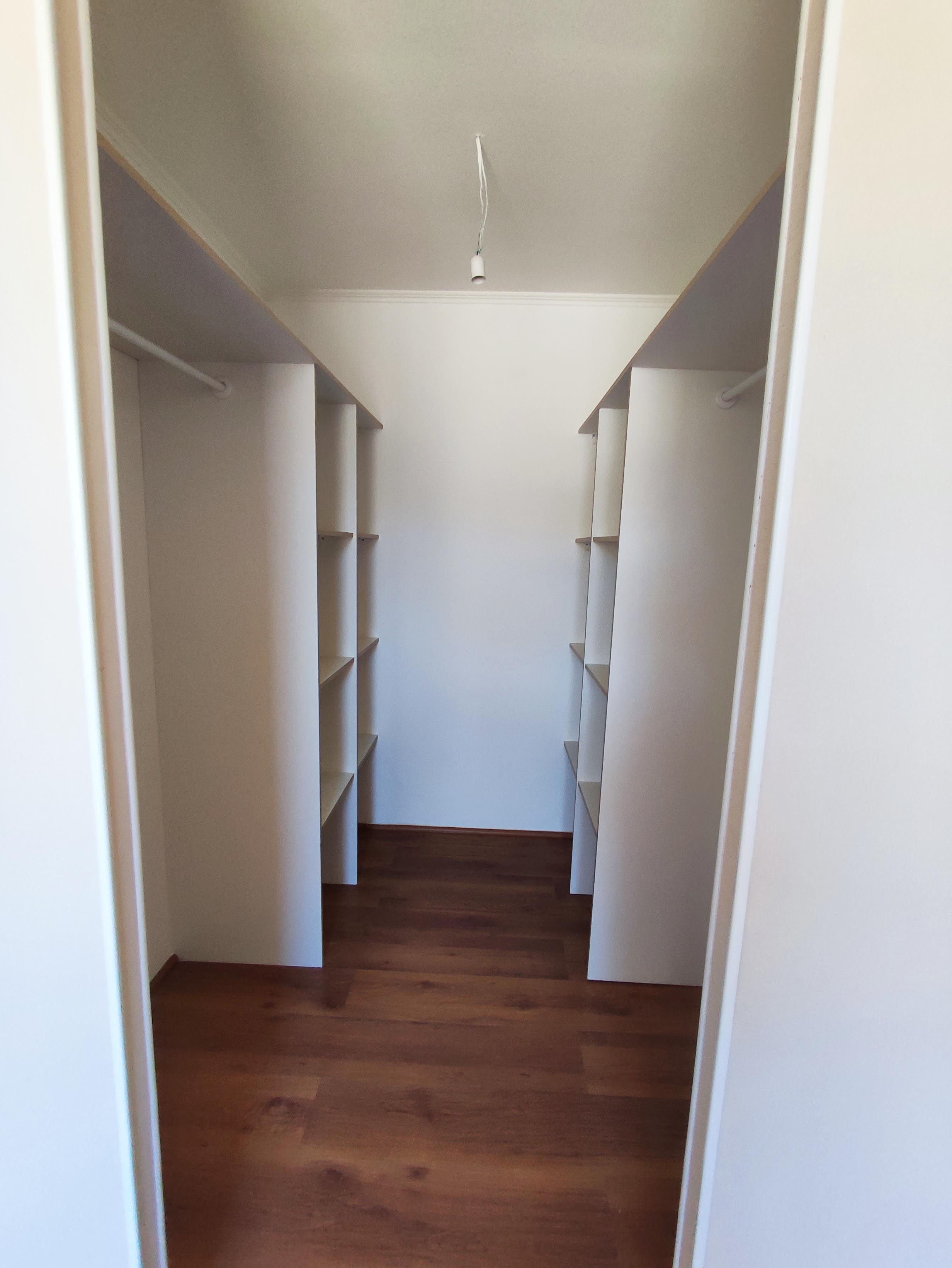 cocina equipada con encimera y horno y campana extractora, dormitorio principal con walk in closet , dormitorio pequeño con closet grande.