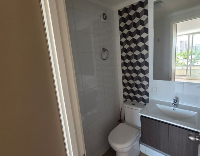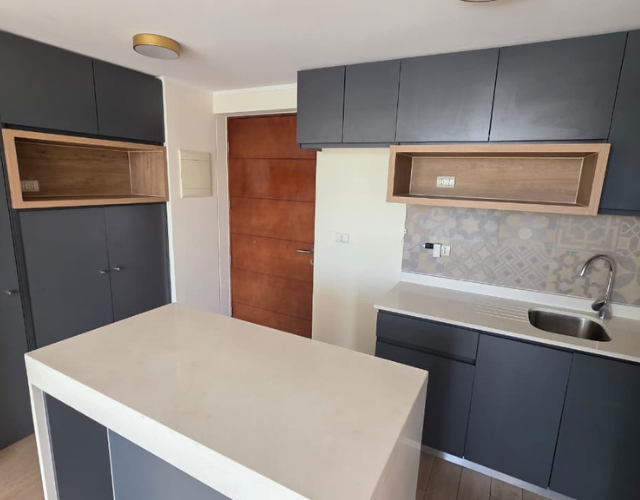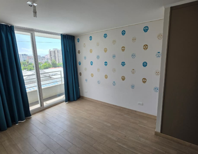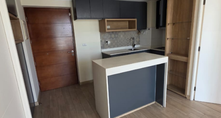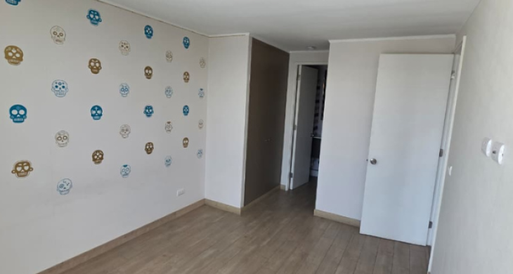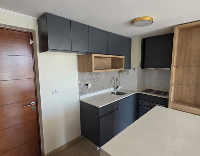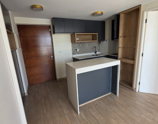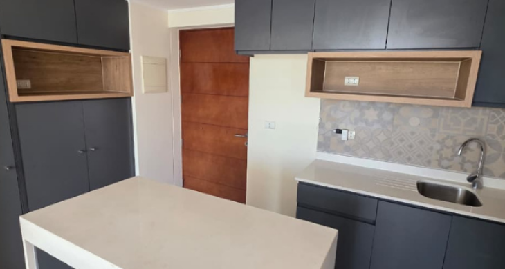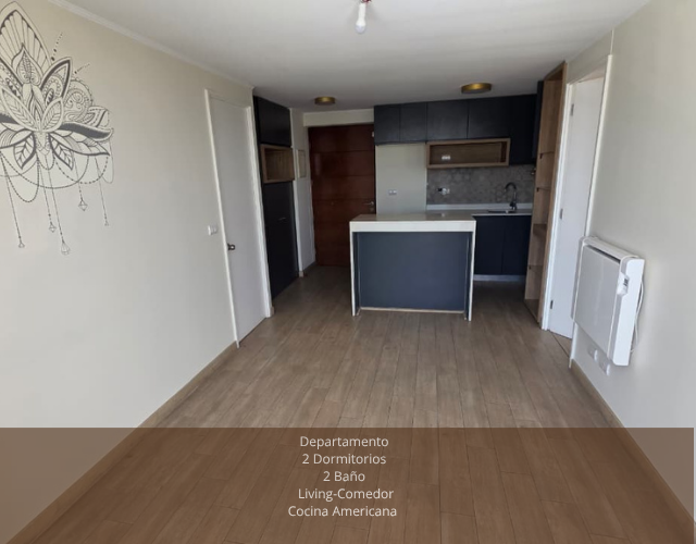 Características: 2 Dormitorio, 2 Baño estilo mariposa + estacionamiento, Amplio Living-Comedor, Cocina americana, Terraza a lo largo del departamento, Gastos comunes: $90.000 aprox. Cuenta con encimera y Horno eléctrico etc seguridad 24/7.
