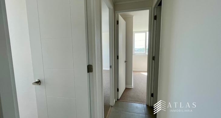 Esta propiedad, recién construida en el año 2023, ofrece una superficie total de 65 metros cuadrados perfectamente distribuidos para maximizar cada espacio y brindar una experiencia habitacional superior. El programa arquitectónico consta de tres dormitorios amplios, destacando el dormitorio principal en suite, diseñado para garantizar privacidad y descanso. Además, el departamento dispone de dos baños completos con terminaciones contemporáneas, asegurando funcionalidad para una capacidad máxima de hasta cinco habitantes. Ubicado en el segundo piso de la Torre 3, la unidad permite un acceso ágil y cómodo dentro del complejo residencial.