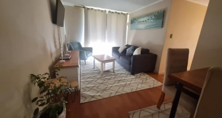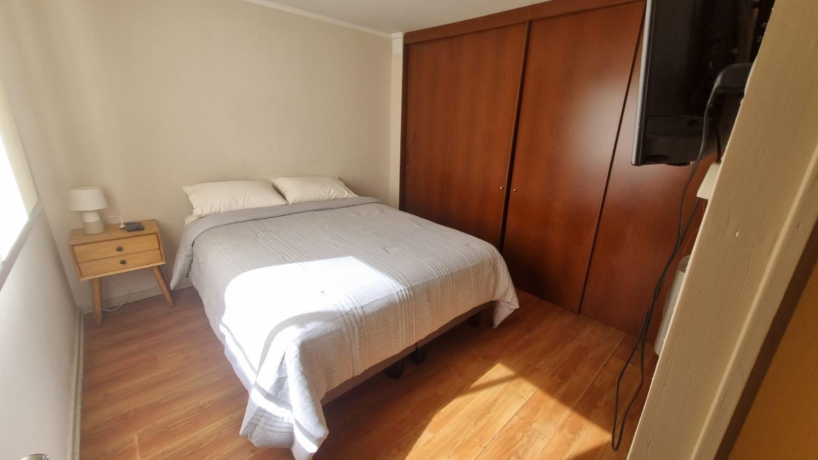 Este acogedor departamento de 65 m², situado en un primer piso, ofrece dos dormitorios bien iluminados, incluyendo un dormitorio en suite para mayor privacidad. Cuenta con dos baños completos y un estacionamiento exclusivo. La propiedad se arrienda completamente amoblada, lista para ser habitada sin preocupaciones.