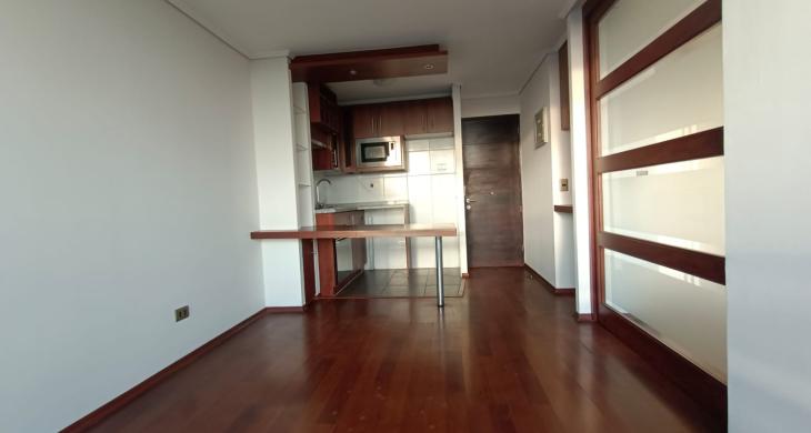 Se Arrienda Depto. de 1D1B, ubicado en Piso 21, con vista despejada y malla de seguridad. Orientación Poniente.
