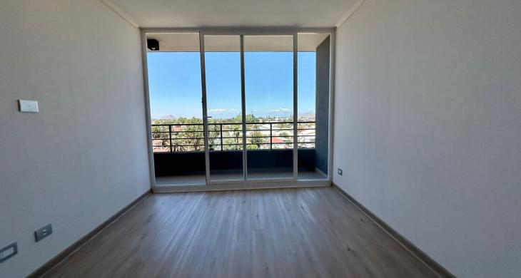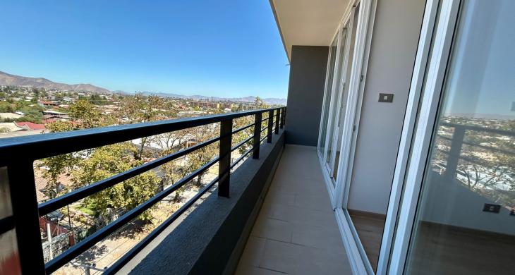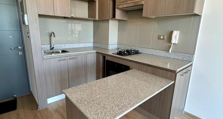 Se arrienda Depto. nuevo de 1D1B con balcón vista despejada, agua caliente por calefont y conexión a lavadora, ubicado en Piso 8, Orientación Sur.