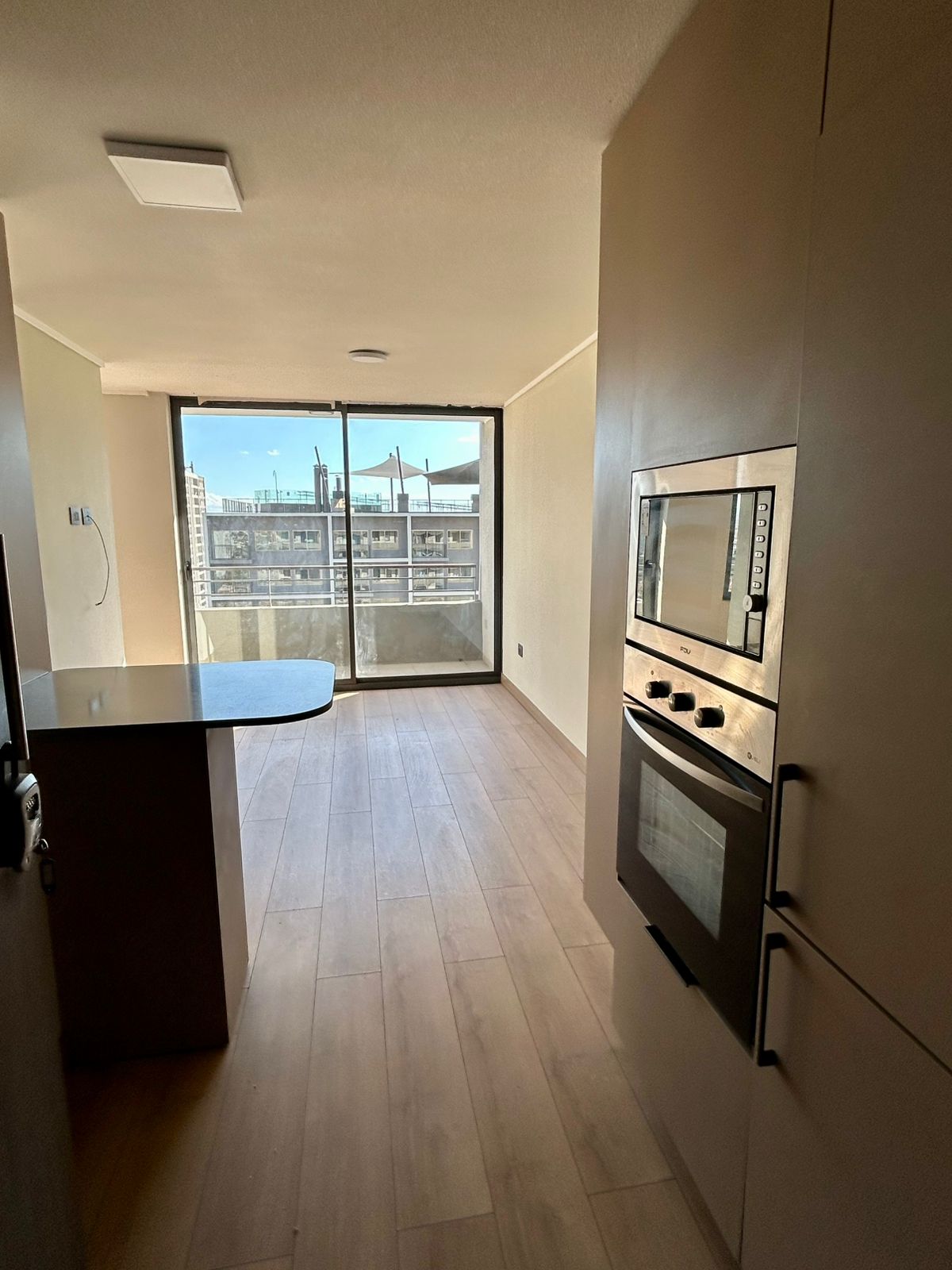 Se Arrienda Depto. de 1D1B, ubicado en Piso 17, con balcón. Orientación Sur, Depto. cuenta con cocina encimera, horno, campana, microondas y refrigerador.