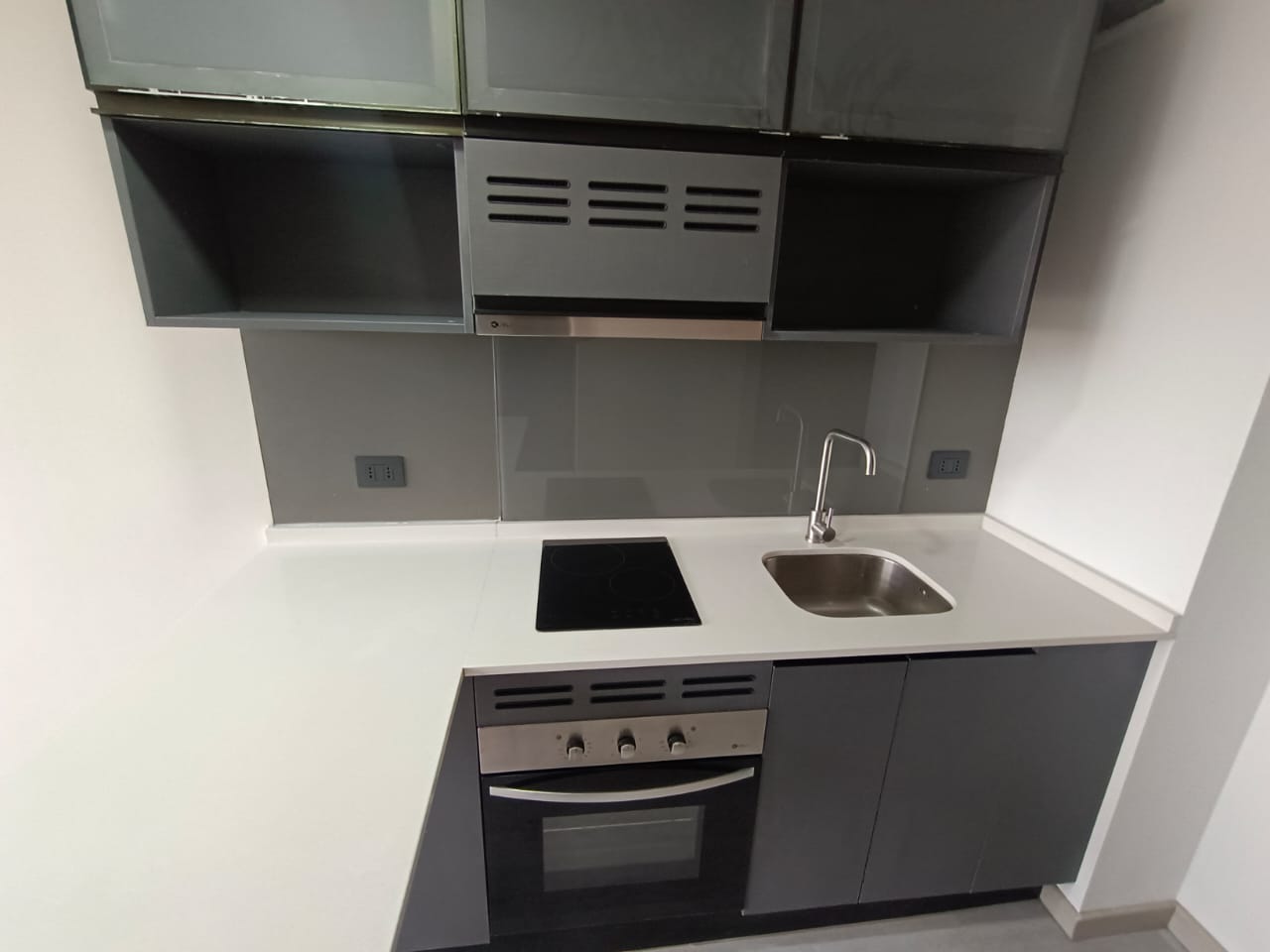 Depto. cuenta con cocina encimera, horno y campana.