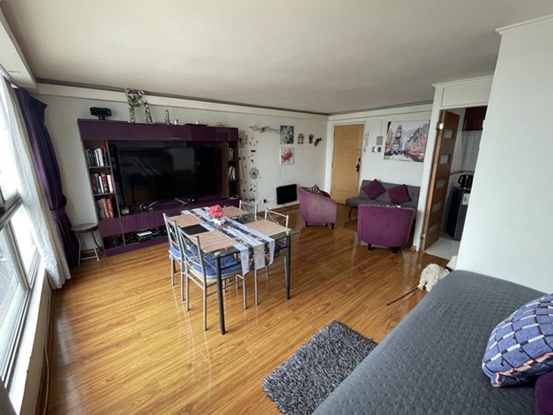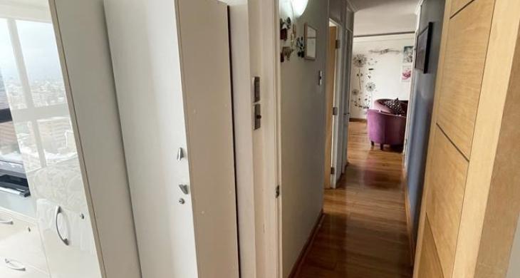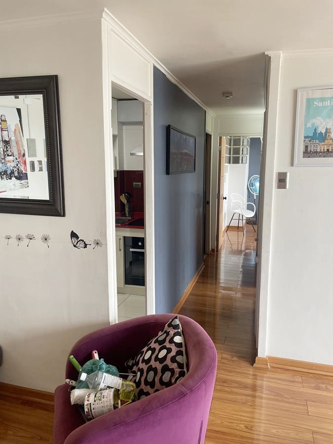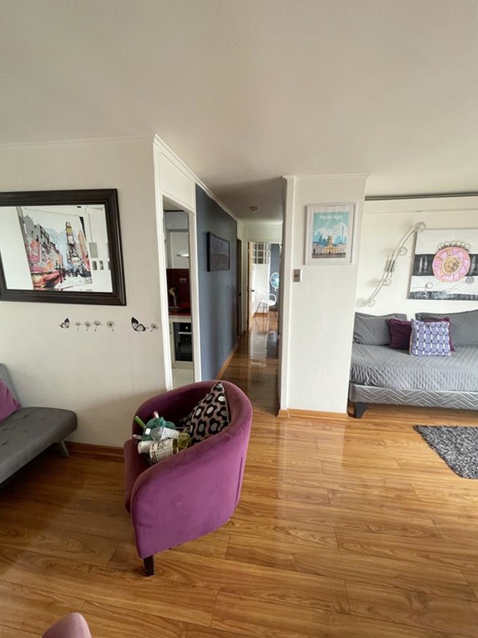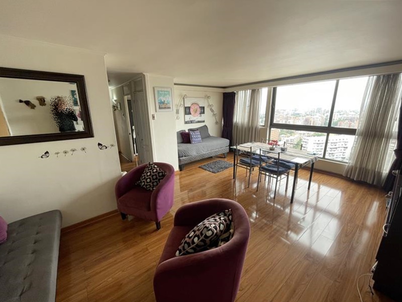 Excelente departamento con entrada a amplia sala living y comedor, sala de estár, ventanales grandes desde cielo raso a piso, ofreciendo una vista despejada espectacular al Oriente, cordillera.