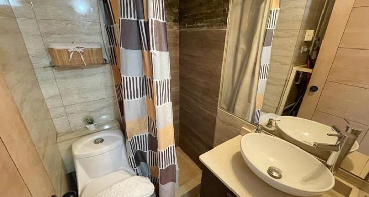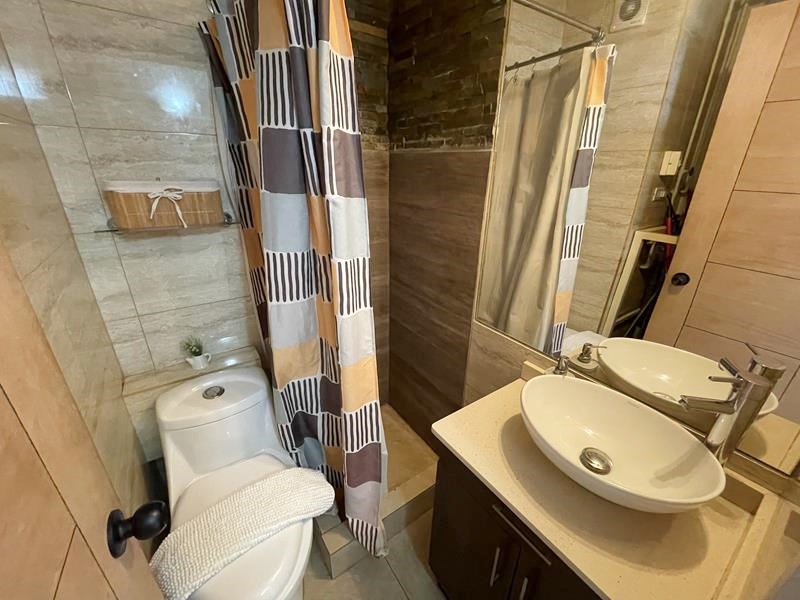 Segundo baño es completo con ducha, mueble en lavamanos y conexión a lavadora.
